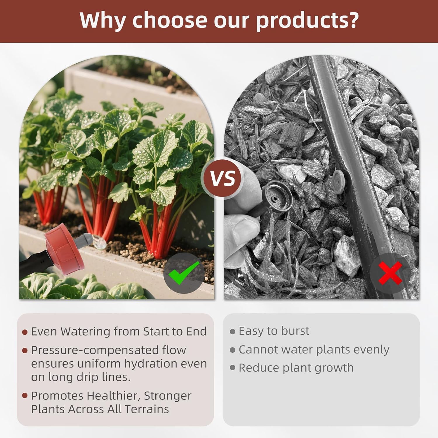 - Built to Last: Our 0.75 GPH Pressure Compensating Spot Watering Drippers/Emitters are made from premium UV-resistant plastic to withstand heat, sun, and outdoor weather. Designed for year-round performance, it won't crack, age or leak - ensuring reliable drip irrigation every season.