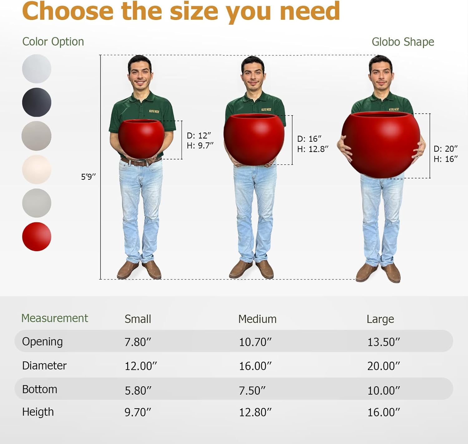 Globo Large Fiberstone Plant Pot, Large Planters for Indoor Plants, Outdoor Planters for Porch (Red, 16" D x 12.8" H)