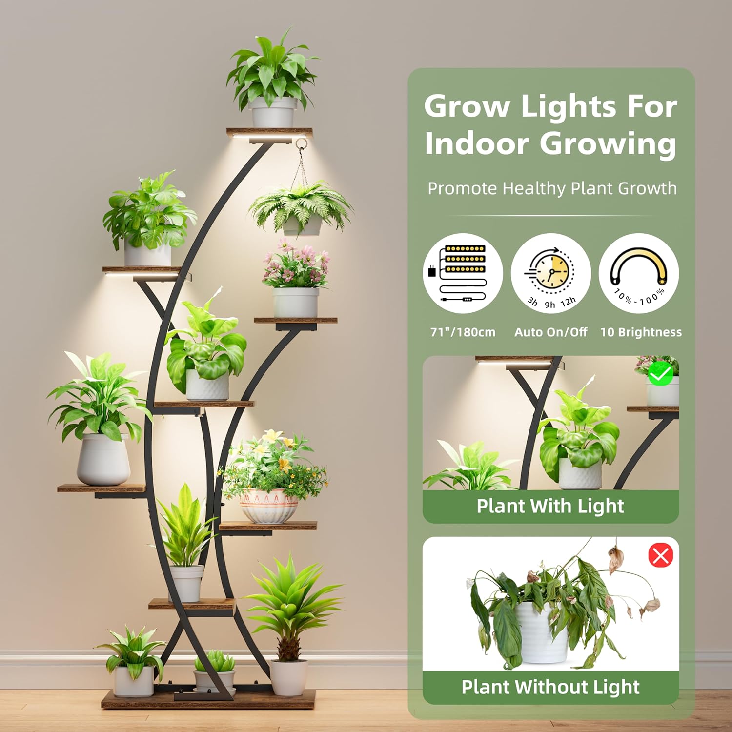 - Multi-Functional: Suitable for a wide range of plants, from small succulents to larger potted plants. Whether you're a seasoned gardener or a beginner, these stands offer a flexible solution for growing plants indoors and can be used to create a vibrant indoor garden. Give you a happy experience
