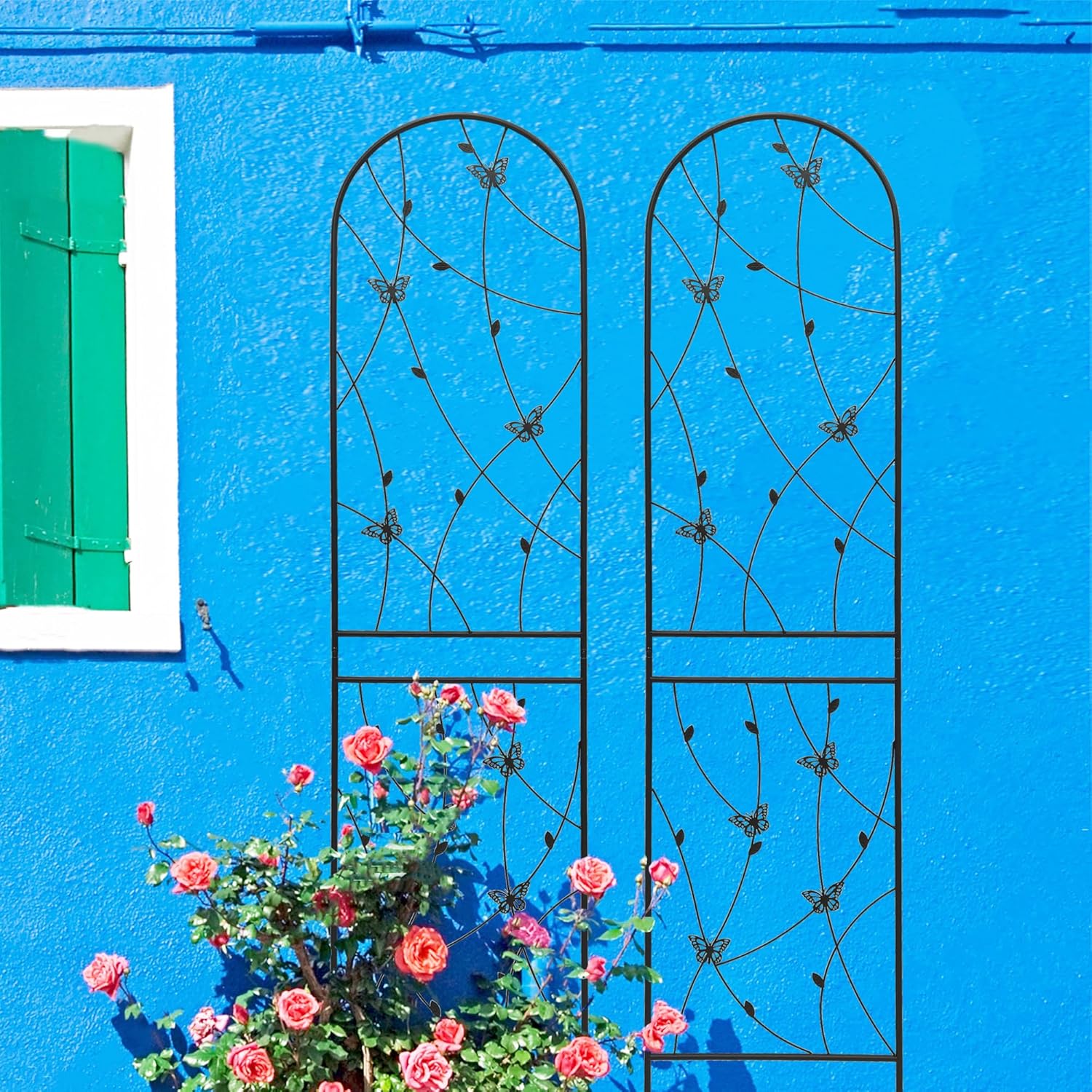 2 Pack Metal Garden Trellis for Climbing Plants, 86.7" Tall Rustproof Outdoor Trellis Panel with Butterfly Design, Decorative Black Iron Plant Support for Vine, Rose, Flower, Garden Wall