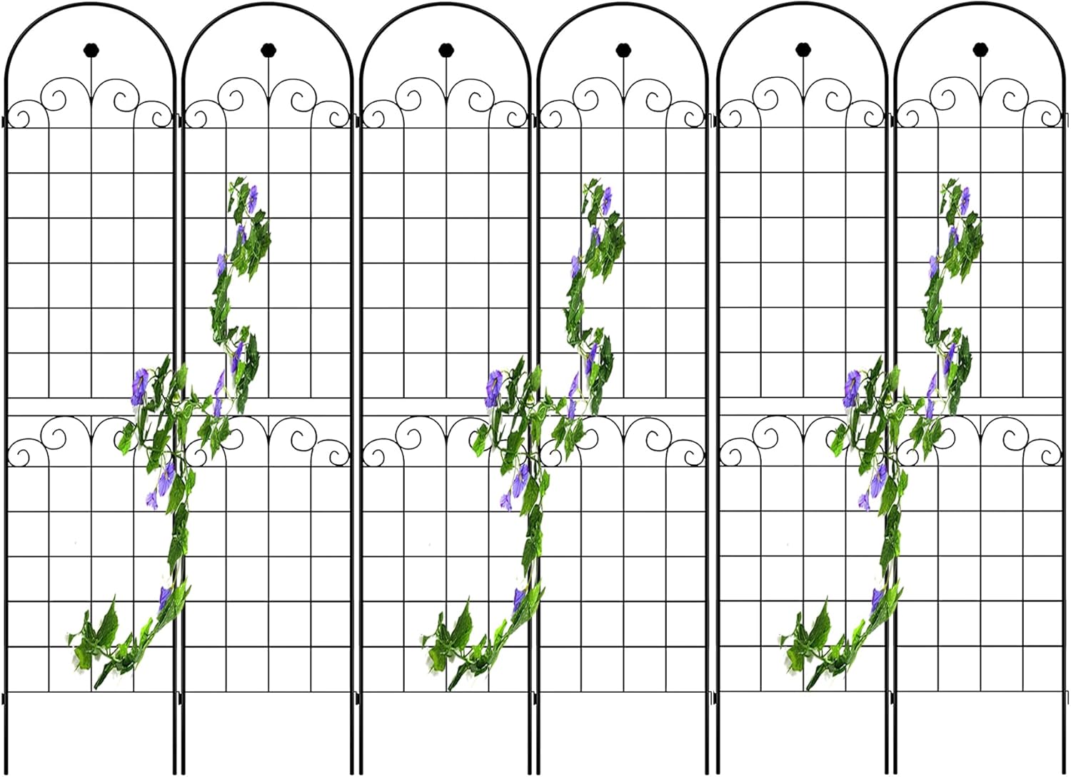6 Pack Metal Garden Trellis for Climbing Plants, 86.7" Tall Rustproof Outdoor Trellis Panel w/Curly Grass Design, Decorative Black Iron Plant Support for Vine, Rose, Flower, Garden Wall