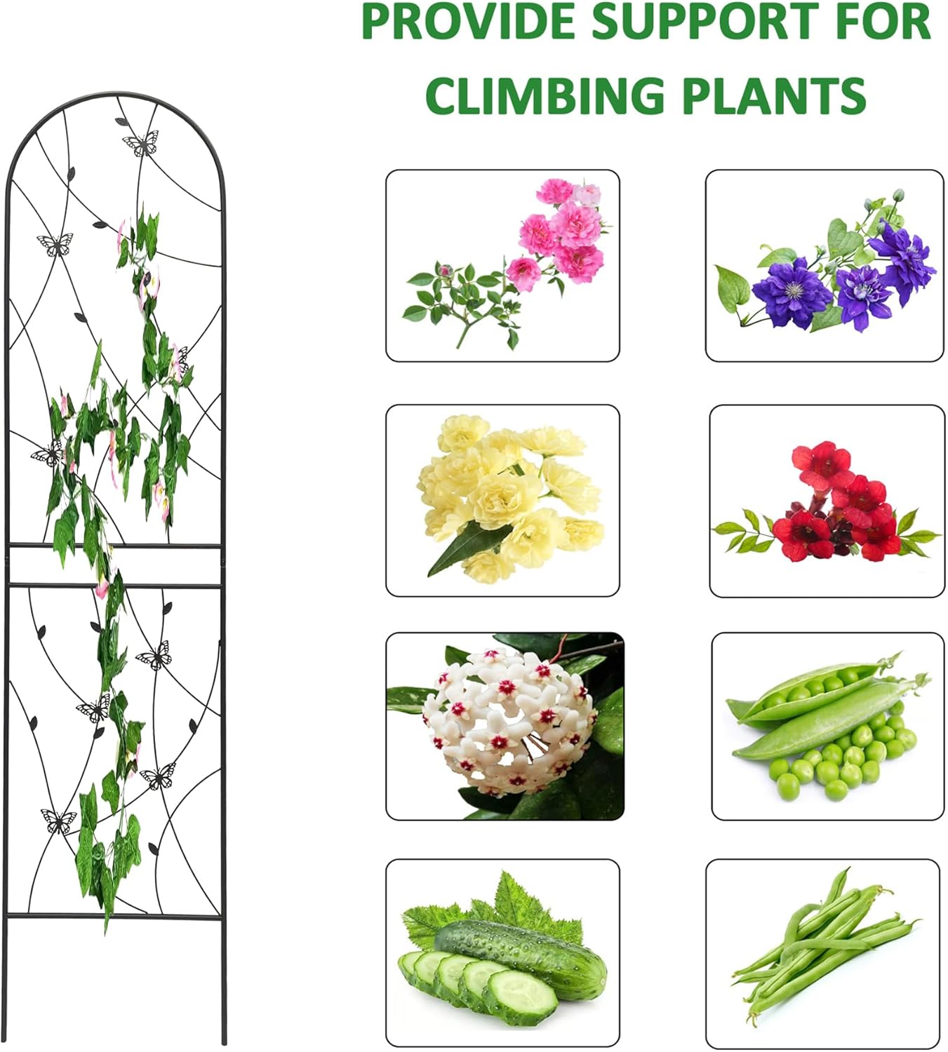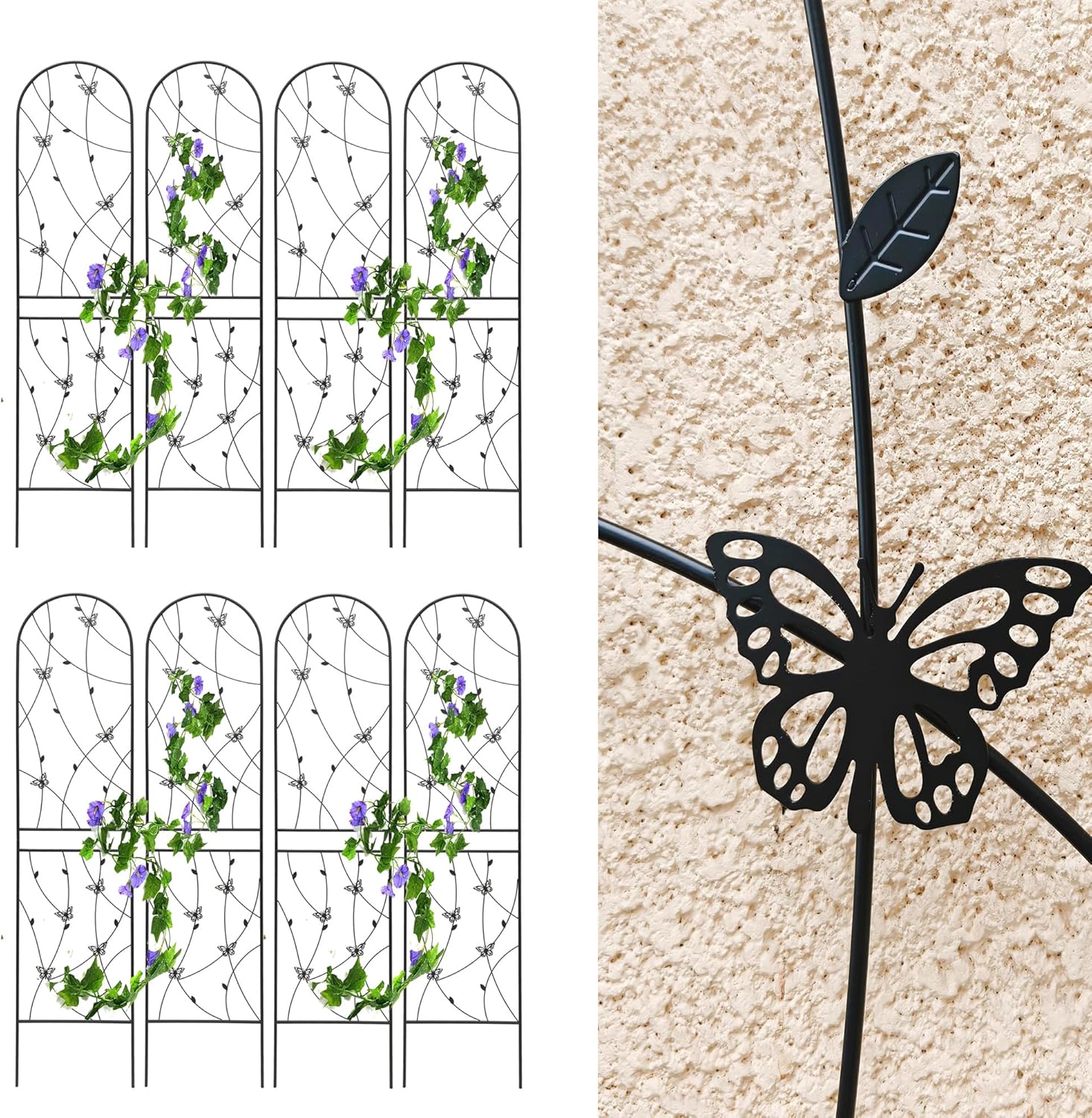 8 Pack Metal Garden Trellis for Climbing Plants, 71" Tall Rustproof Outdoor Trellis Panel with Butterfly Design, Decorative Black Iron Plant Support for Vine, Rose, Flower, Garden Wall