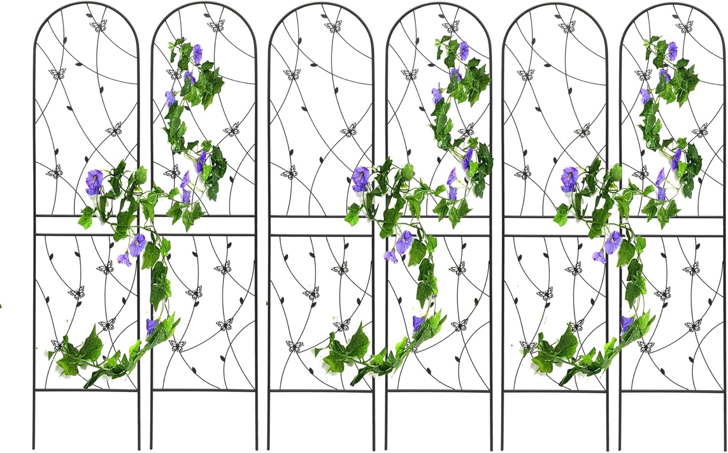 6 Pack Metal Garden Trellis for Climbing Plants, 86.7" Tall Rustproof Outdoor Trellis Panel with Butterfly Design, Decorative Black Iron Plant Support for Vine, Rose, Flower, Garden Wall