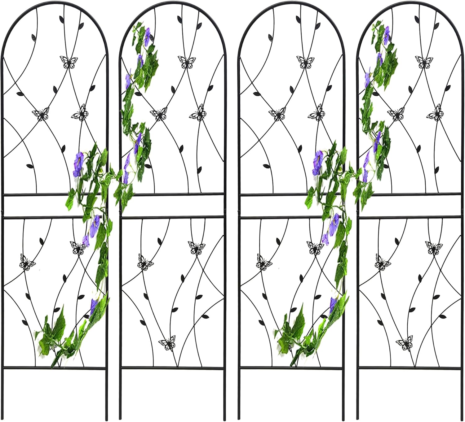 4 Pack Metal Garden Trellis for Climbing Plants, 71" Tall Rustproof Outdoor Trellis Panel with Butterfly Design, Decorative Black Iron Plant Support for Vine, Rose, Flower, Garden Wall