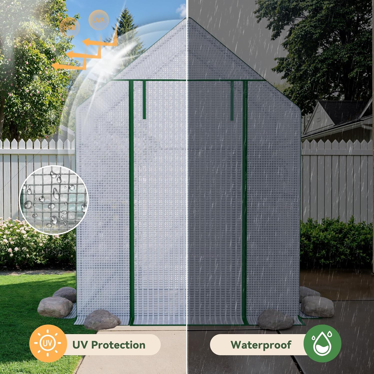 - 【Durable Cover】 Built with a thick PE cover reinforced with high-tensile grid fabric, this greenhouse for outdoors provides reliable waterproof and UV protection, ensuring plants thrive in all seasons.