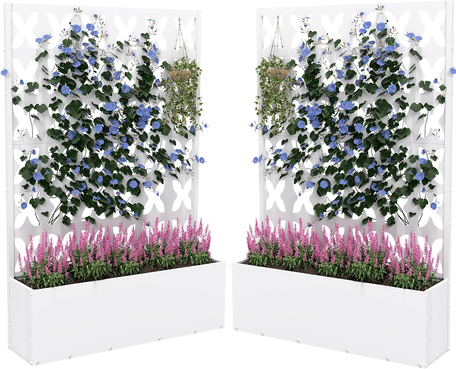 2PCS Metal Planter Box with Trellis,70.9"x47.2"x15.7" Raised Garden Bed with Drainage Holes, Privacy Planters for Outdoor Garden Bed for Climbing Plants,Vegetables,and Vines, White-X
