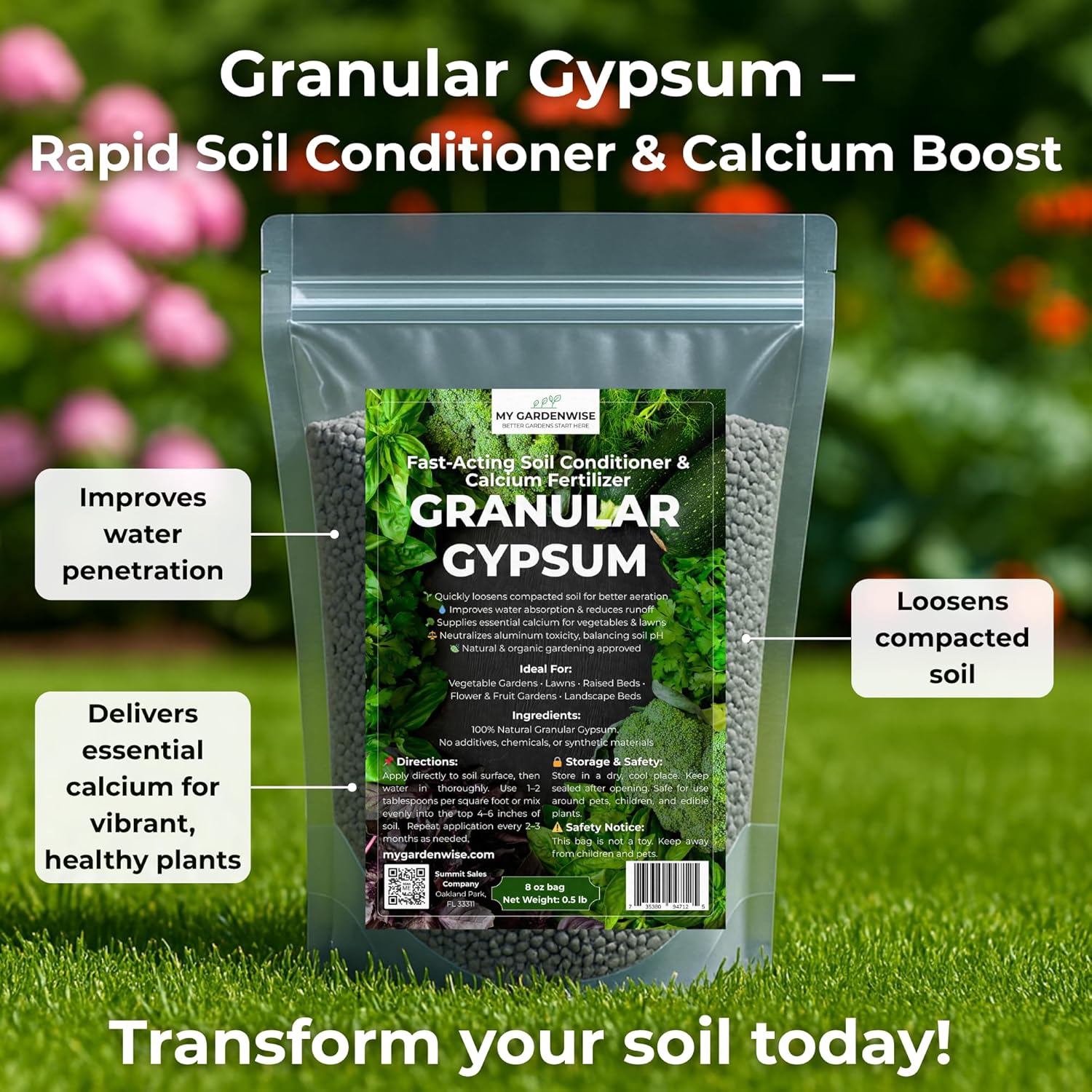 - 🌿 Rapid Soil Improvement: Our fast-acting granular gypsum quickly loosens compacted soils, enhances aeration, and promotes healthier plant root systems. Ideal granular gypsum for gardening enthusiasts and professional landscapers alike.