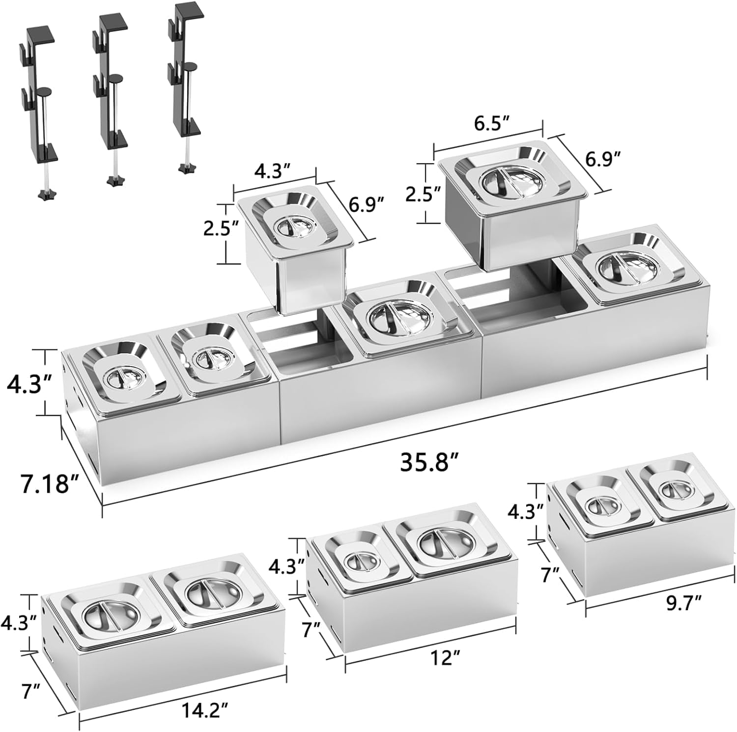 - Condiment Caddy Design-With three 2L and three 1.3L containers, it is a perfect tools for preparing ingredients and toppings. Each container is fitted with a lid,could be easily stacked and stored in the fridge. Specially designed to fit on our tables, and it keep the ingredients fresh and clean, free from environmental contamination ►What you get-3*seasoning box holder modules, 3*large containers, 3*small containers