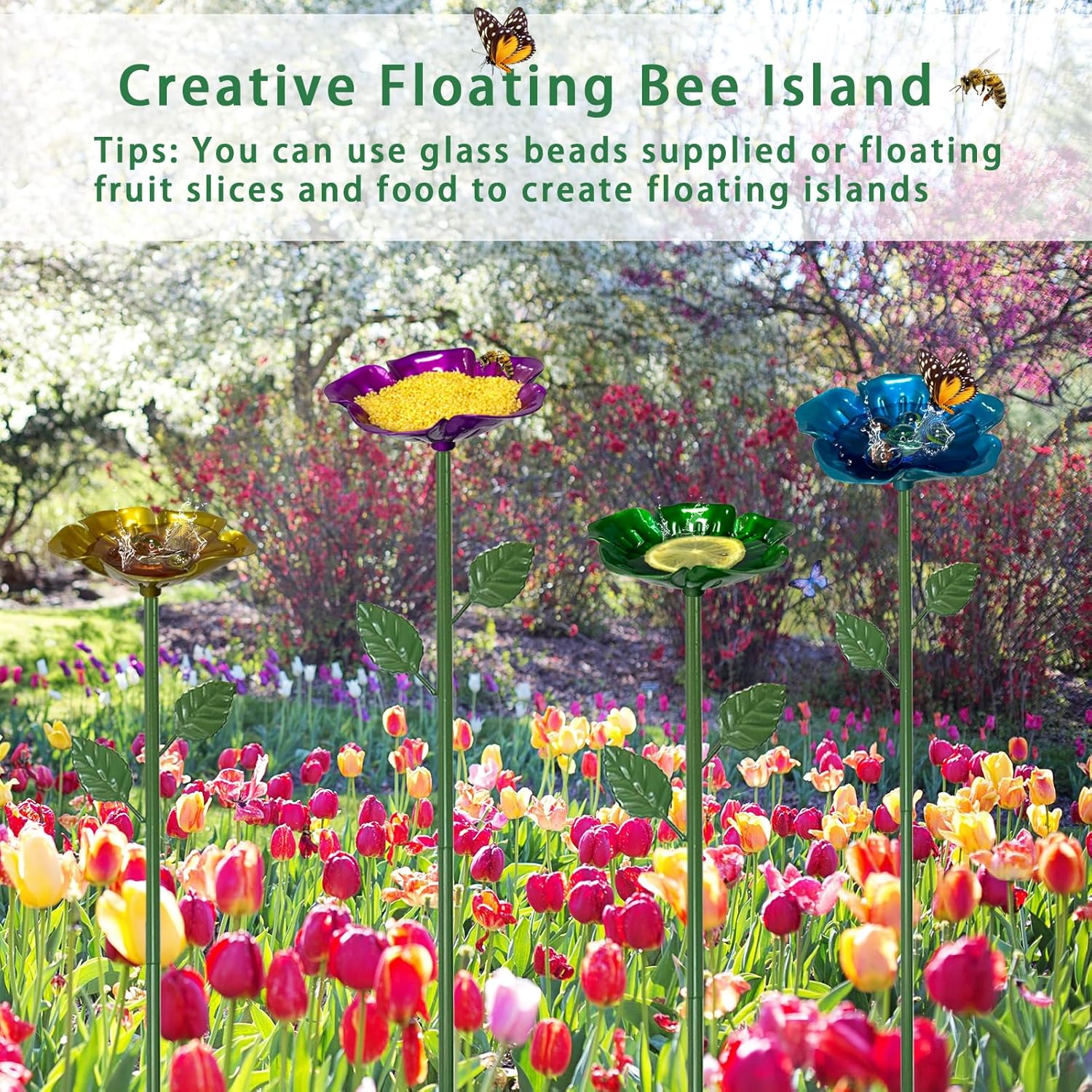 4 Packs Metal Bee Watering Station,Bee Water Feeder for Garden with 20 Marbles for Outdoor Decor,Decorative Water Feeder to Attract Pollinators(Red,Green,Blue,Yellow)