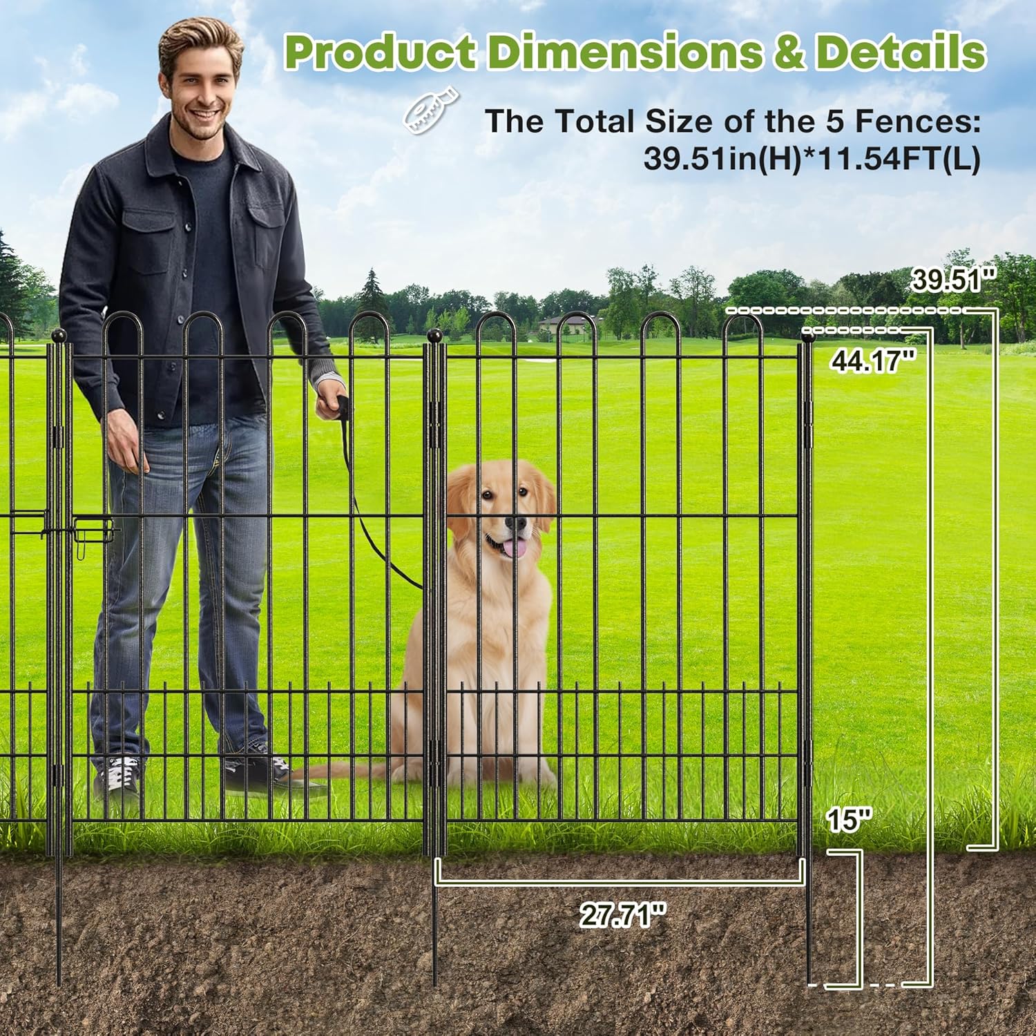 5 Panels Dog Fence Outdoor for Yard, 39.5in (H) x 11.5ft (L) Dog Fence for Garden