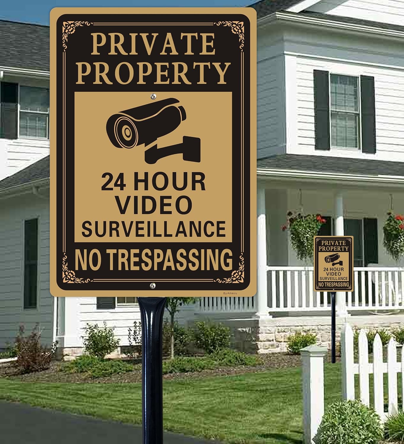 - DURABLE CONSTRUCTION: Metal Yard stakes is Made from robust metal material in sleek black finish, designed to withstand outdoor weather conditions