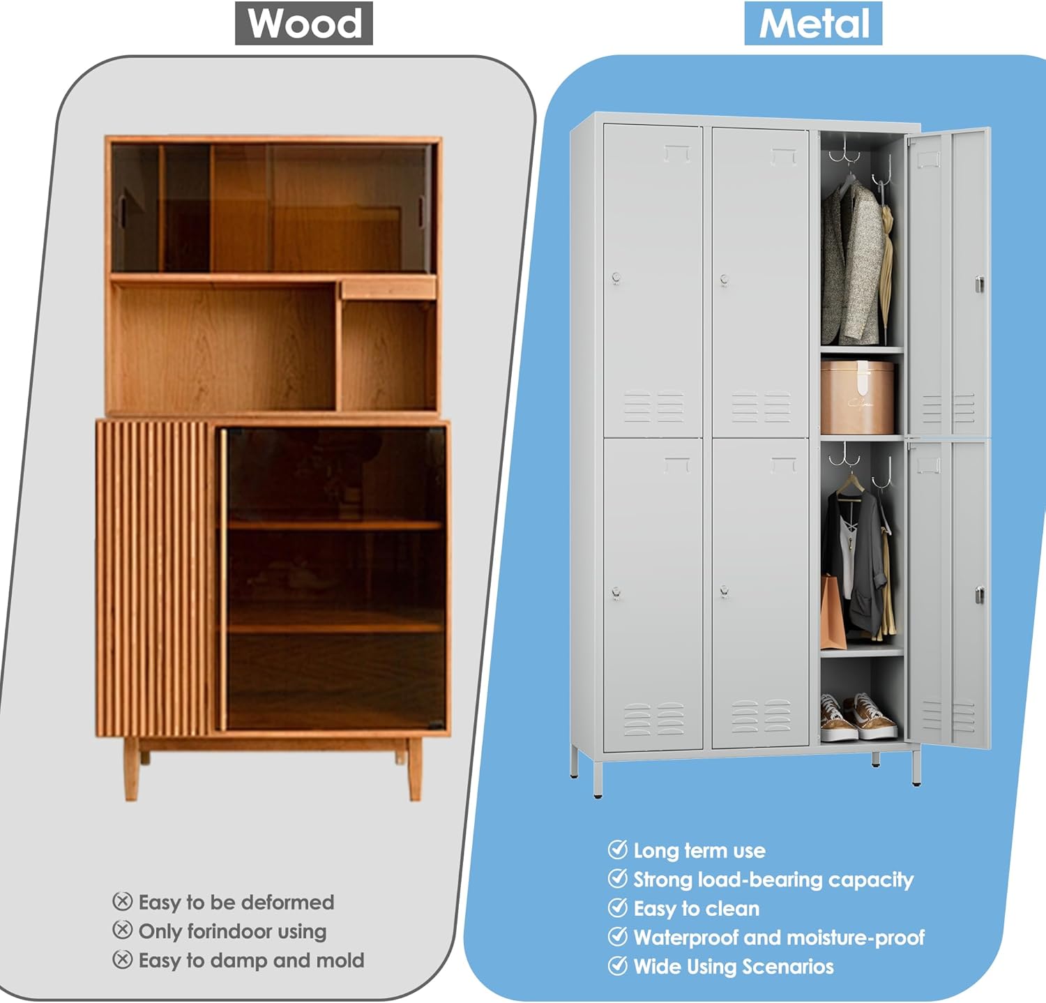 - 【Sturdy and Higher Quality】100% steel material is made into metal locker,locker employee powder coating process makes storage locker Sturdy and higher quality.