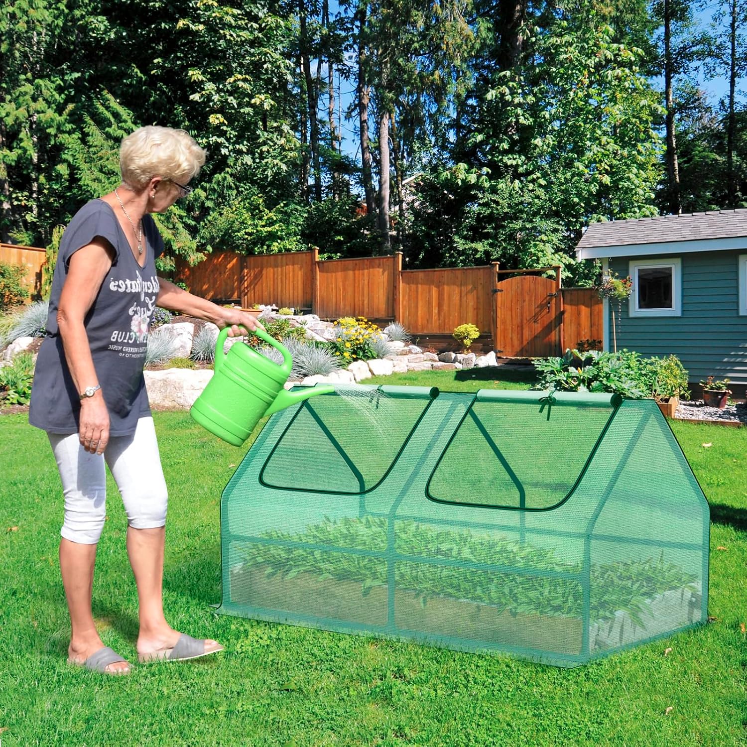 - Versatile Design: Lightweight and tool-free to assemble, this portable greenhouse fits perfectly on balconies, patios, or raised garden beds. Whether you’re germinating seeds indoors or sheltering plants outdoors, it adapts to your gardening needs