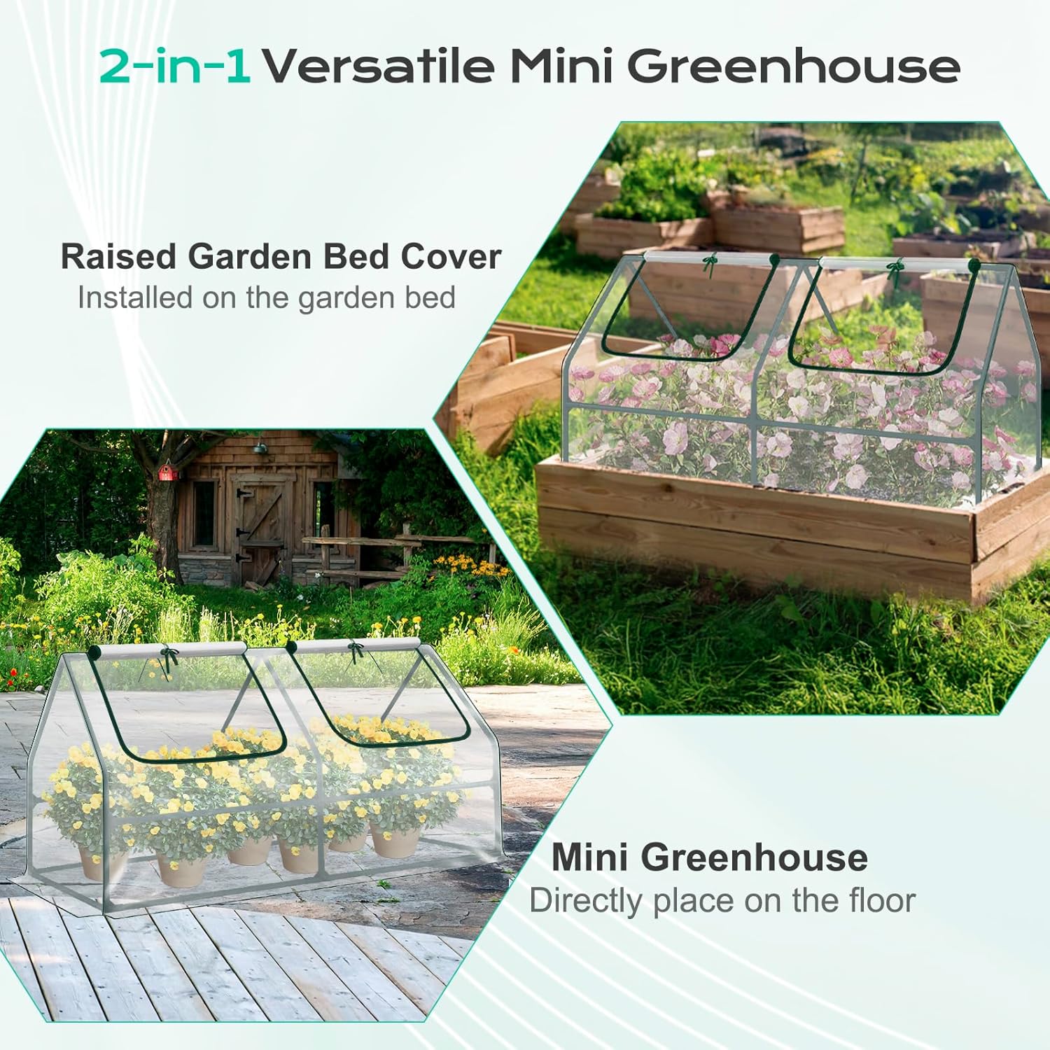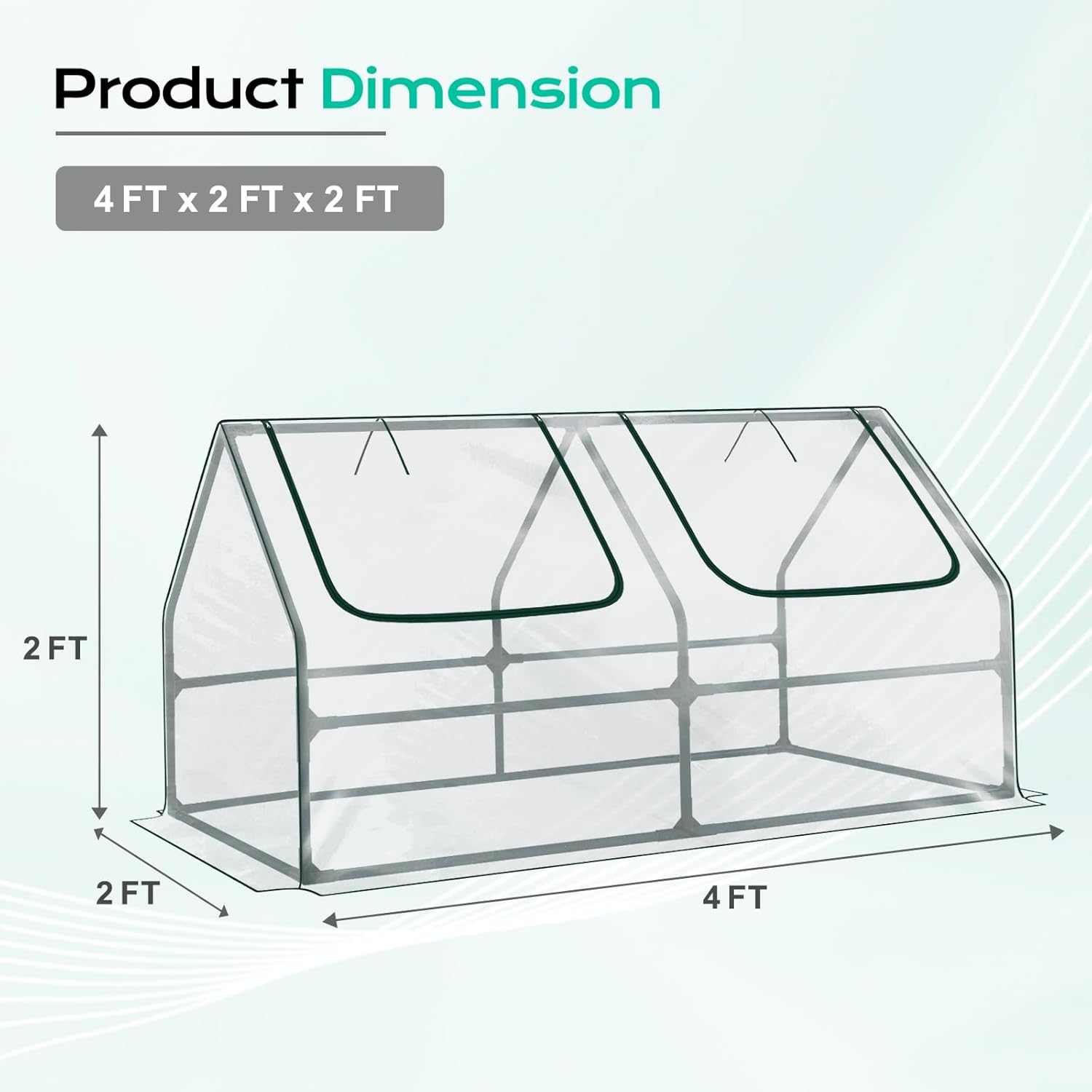 BPS 4x2x2 ft Mini Greenhouse with Transparent PVC Cover UV-Protected Roll-Up Zipper Windows, Ideal for Indoor or Outdoor Use on Raised Garden Beds