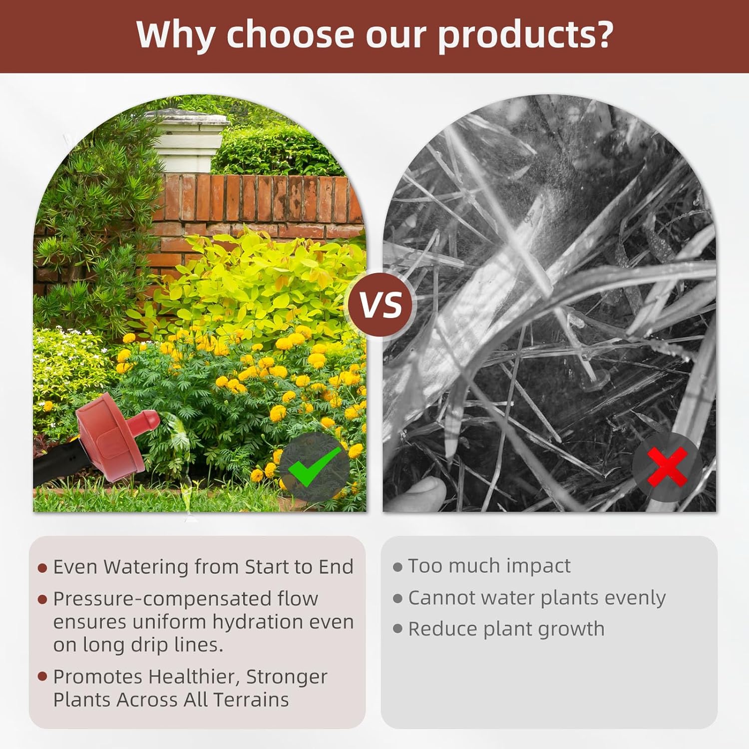 - Built to Last: Our 4 GPH Pressure Compensating Spot Watering Drippers/Emitters are made from premium UV-resistant plastic to withstand heat, sun, and outdoor weather. Designed for year-round performance, it won't crack, age or leak - ensuring reliable drip irrigation every season.