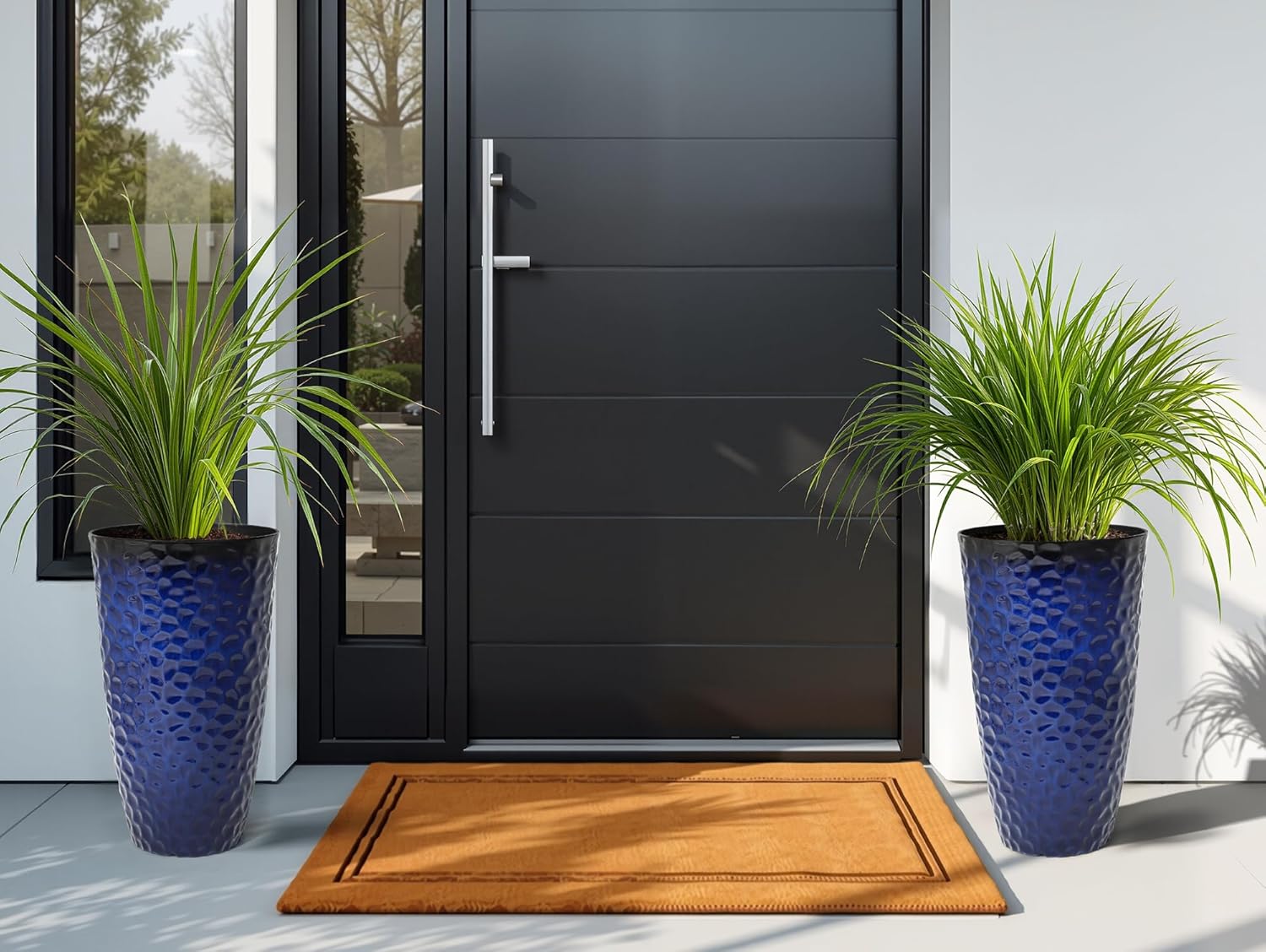 - UNIQUE HONEYCOMB TEXTURE: Upgrade your decor with this set of 2 plastic planters, showcasing a gorgeous gradient cobalt blue honeycomb textured faux ceramic finish that radiates contemporary elegance. Well-suited for enhancing your front porch, making a bold garden statement, or adding a modern flair indoors, these planters provide a stunning showcase for vibrant flowers, thriving greenery, or fragrant herbs, elevating any space with refined style and natural appeal.
