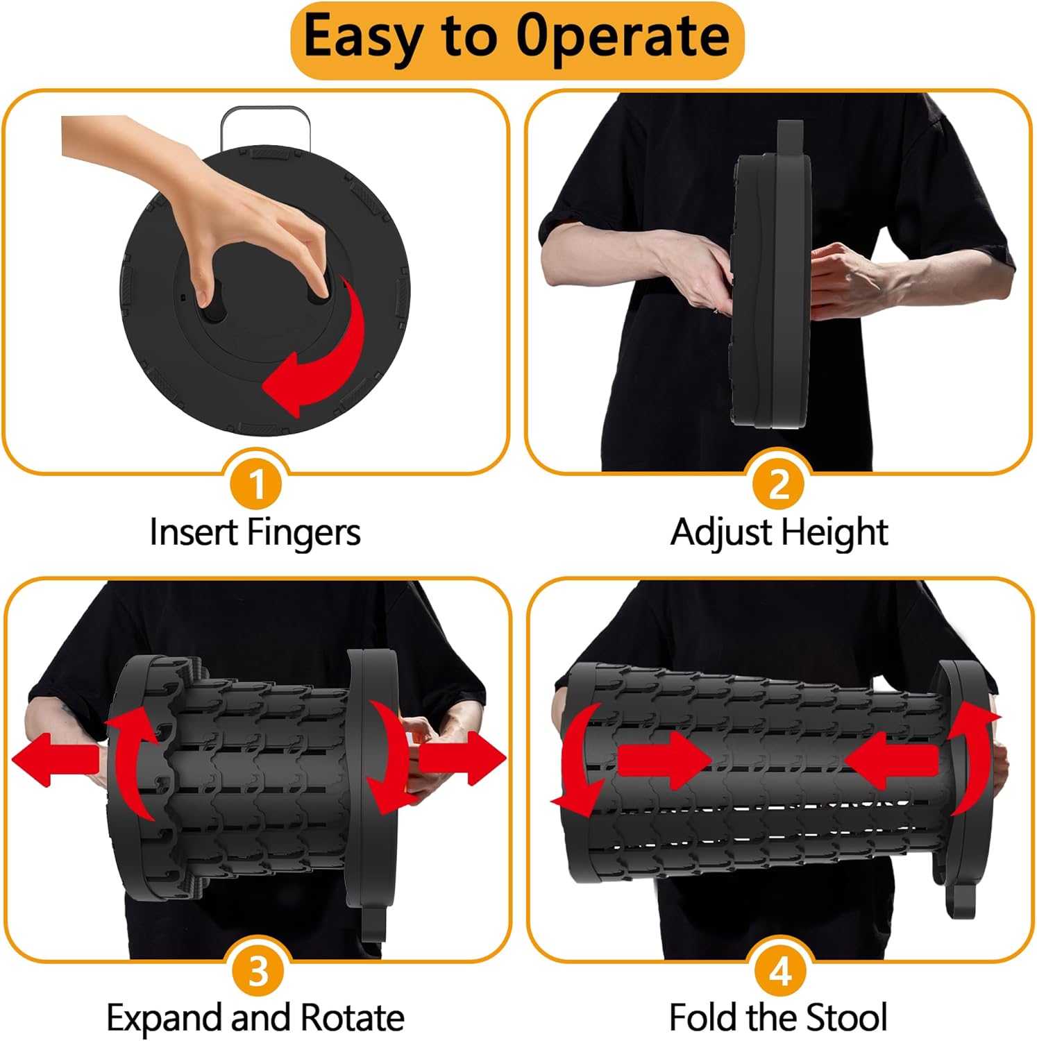 - Suitable size for most adults: Our telescopic stool has a diameter of 10.2"(26cm) and an adjustable height range of 2.6-18"(7-46cm). The multi-layer fish scale lock structure allows you to choose a comfortable height at will. Just hold both ends of the stool and rotate it in different directions. After fixing the lock, you can sit down and rest.
