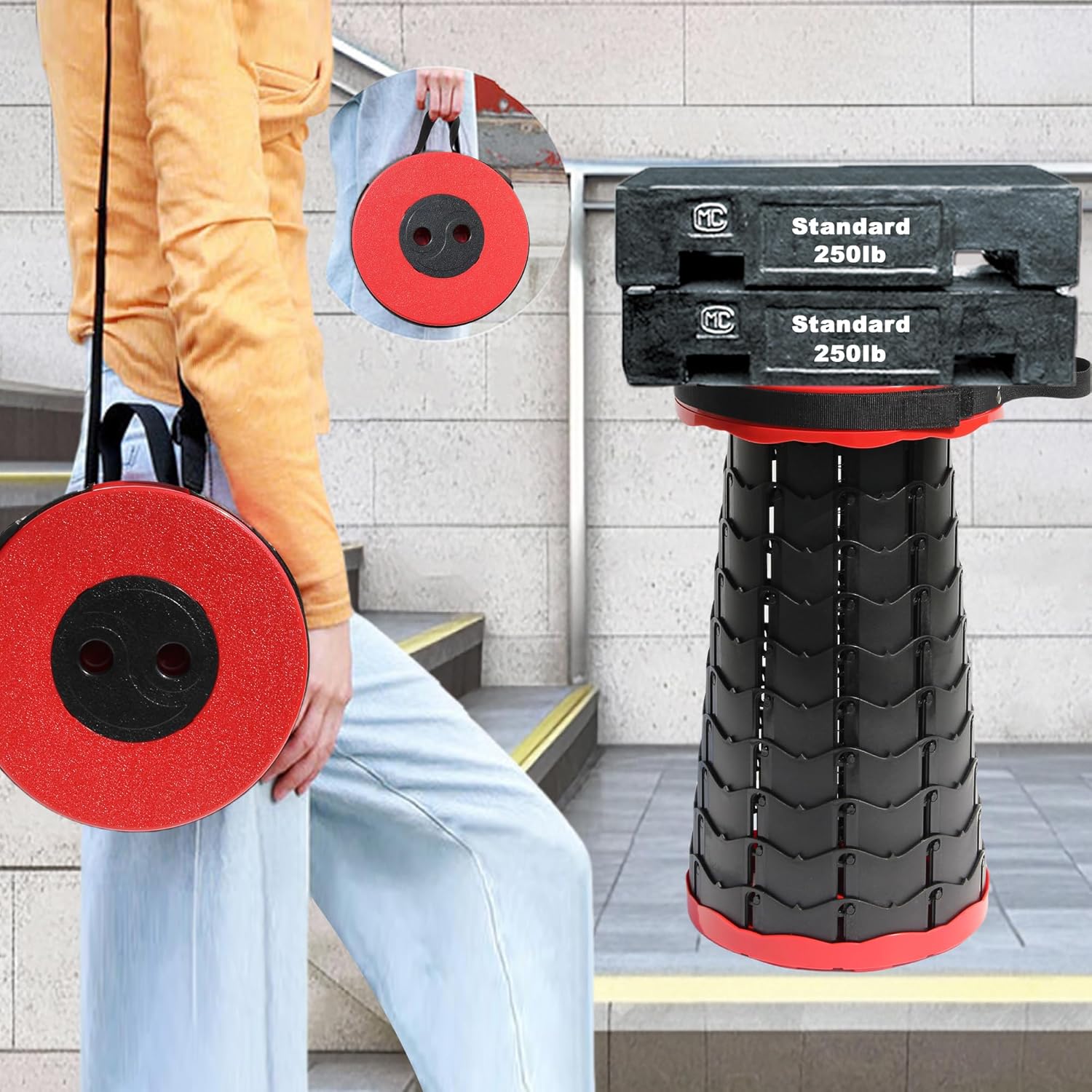 ALEVMOOM Upgraded Nylon Collapsible Stool with 500lbs Max Weight Portable Retractable Folding Telescoping Stools for Adults Chair for Outdoor Camping Fishing Hiking BBQ (Nylon Red)