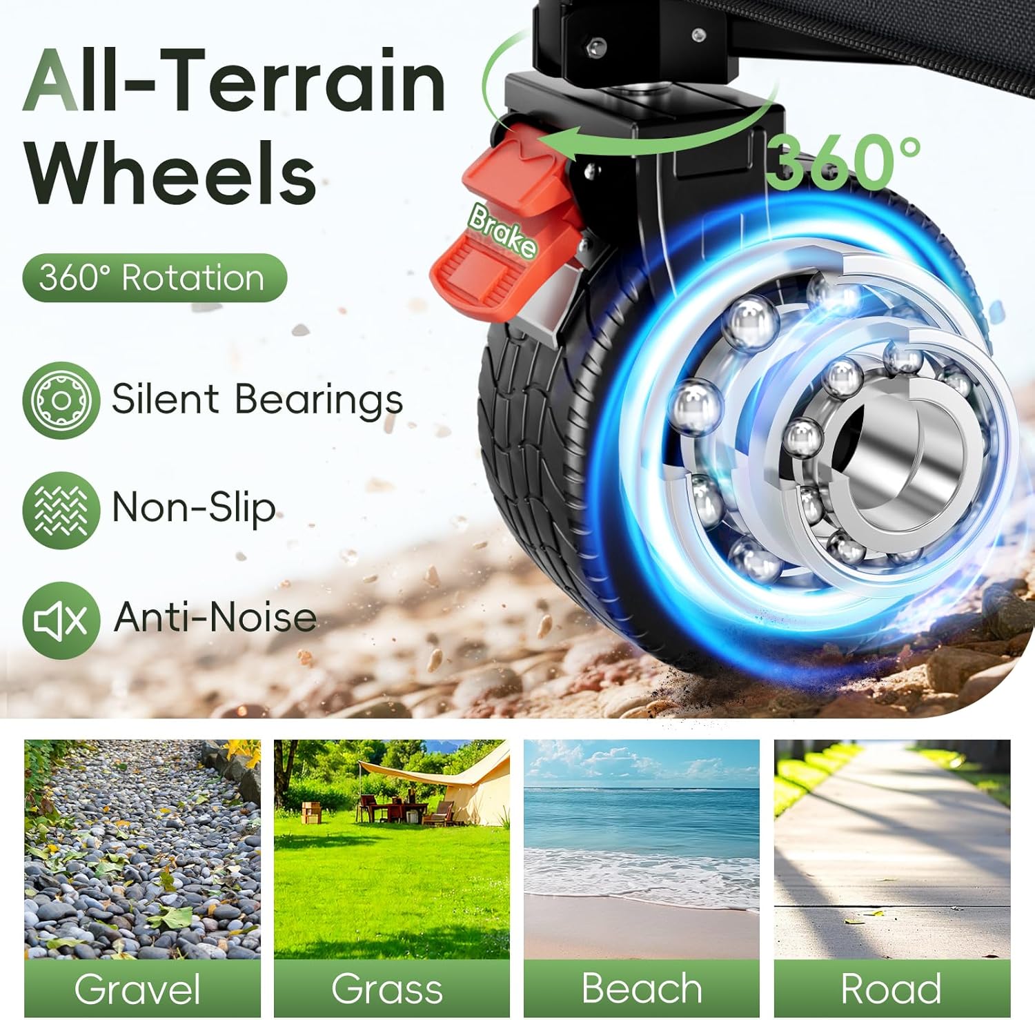 - ใ๐๐น๐น-๐ง๐ฒ๐ฟ๐ฟ๐ฎ๐ถ๐ป ๐ช๐ต๐ฒ๐ฒ๐น๐ใ:๐๐๐ฌ๐ก๐ข๐ก Utility Wagon Cart designed with ๐ฏ๐ฒ๐ฌยฐ rotating front wheels and ๐ฑ๐๐ฎ๐น-๐ฏ๐ฒ๐ฎ๐ฟ๐ถ๐ป๐ด construction, providing smooth and stable movement on ๐๐ฎ๐ป๐ฑ, ๐ด๐ฟ๐ฎ๐๐ฒ๐น, ๐ด๐ฟ๐ฎ๐๐, and other rough surfaces