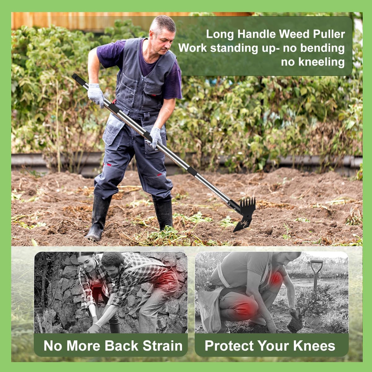 - Adjustable Long-Handle Weed Puller – Easily remove weeds without bending or kneeling, thanks to the extendable pole (16" to 60"). Quick 30-second assembly: just screw-lock the stainless steel poles together and attach the weeder head for instant use.