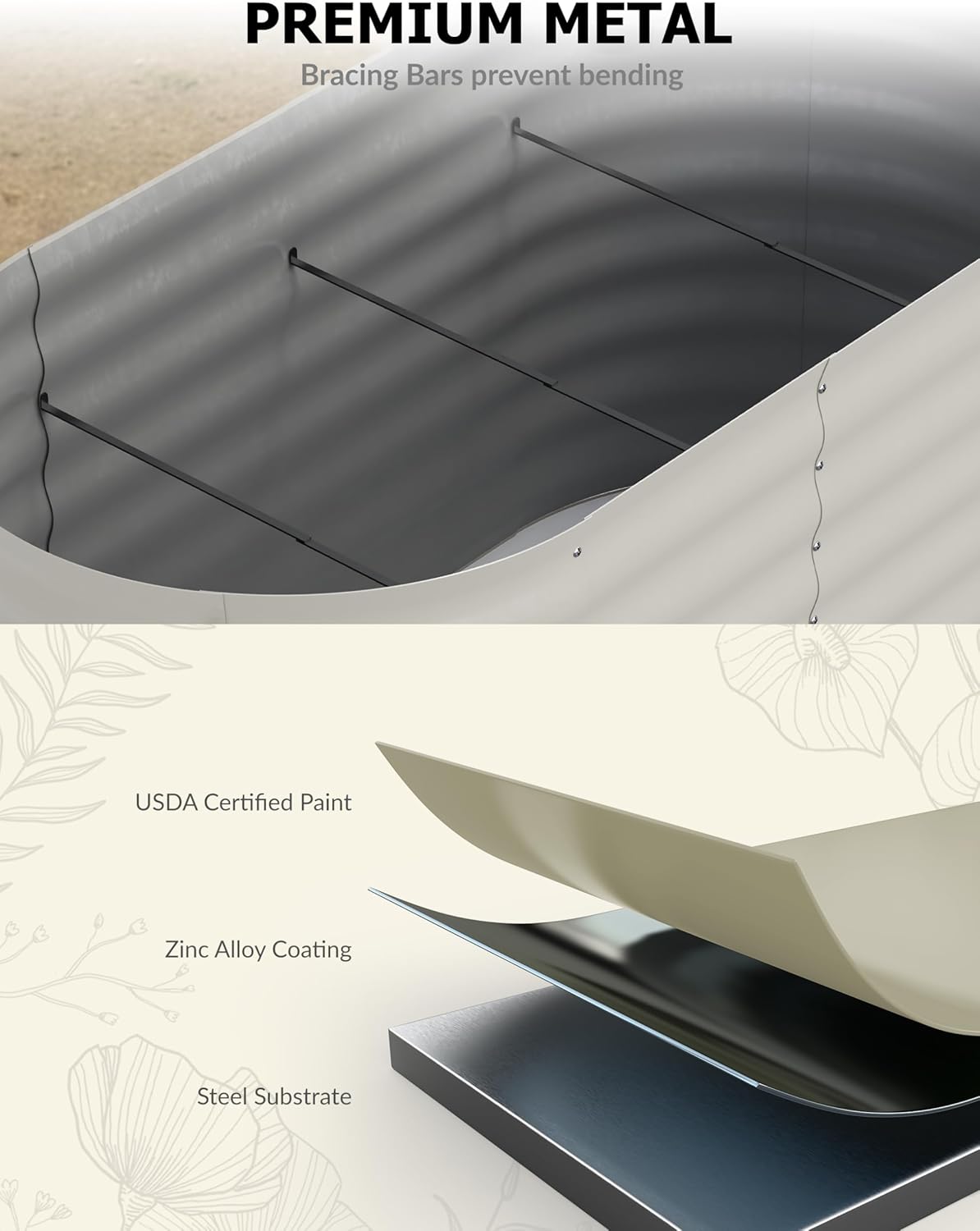 - 【2 Pack Premium Galvanized Raised Garden Bed】Our heavy-duty raised garden bed features 18/24 in elevated sides - taller than standard garden boxes for better root growth. Constructed with weather-resistant galvanized steel and internal supports, this planter raised bed offers superior durability for outdoor use.