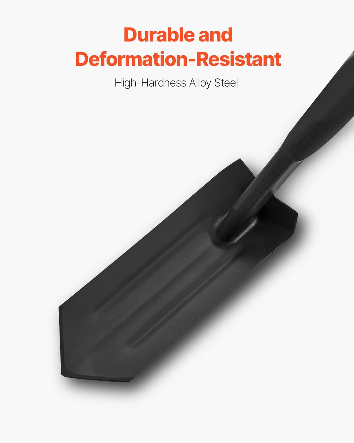 - Sturdy Material: Built with a high-strength alloy steel blade and a thickened fiberglass handle, this trenching shovel offers the support needed for demanding jobs. It stays firm without bending and handles digging and moving soil with ease