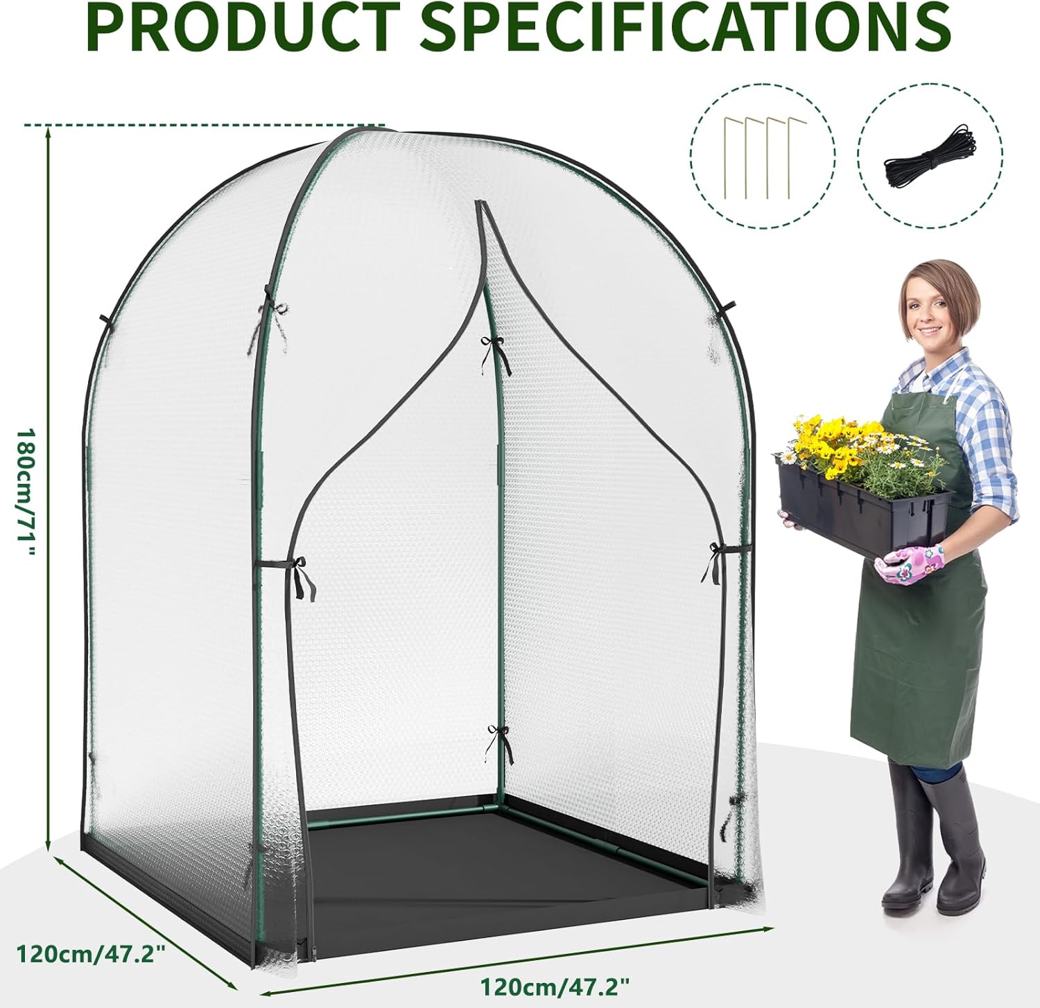 SUNYRISY Greenhouse for Outdoors with Waterproof Pad, Thick Bubble Film Cover Portable Small Mini Green House Kit for Outside, Walk in Zippered Door Grow Tent Plant Cover, 47" L x 47" W x 71" H