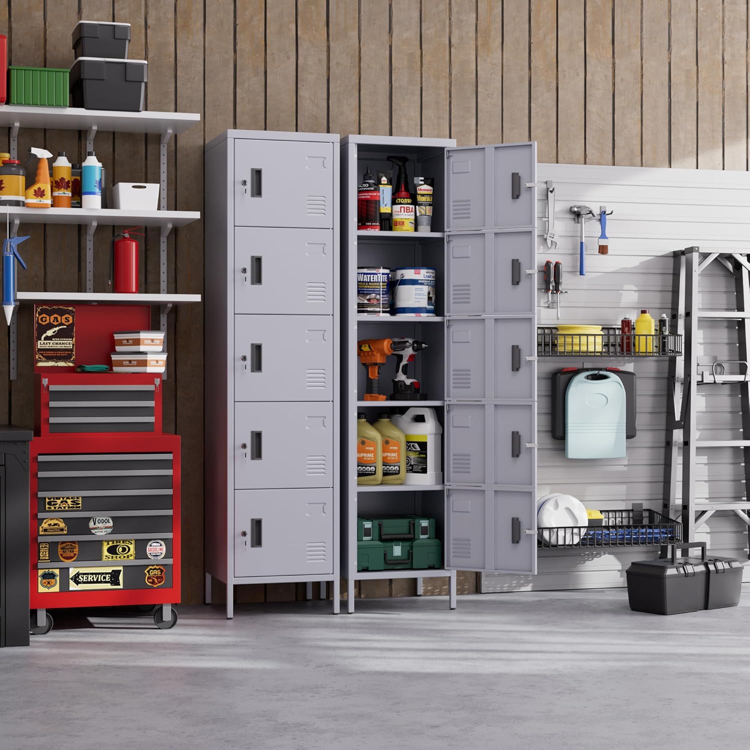 5 Doors Metal Storage Locker for Employees,Steel Home Office Storage Cabinet,66" H Employee Lockers with Adjustable Feet for School Gym Home Office, Assembly Required,Dark Grey