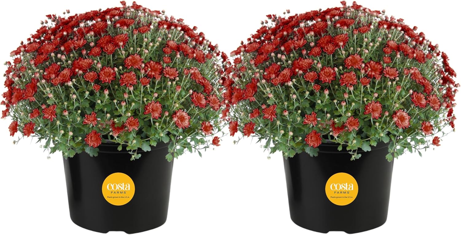 Costa Farms Live Plants – Fall Mums 2-Pack (Red) in Grow Pots | 3 Qt. Seasonal Houseplants & Outdoor Flowers for Porch, Patio, or Garden | Ships in Bud Form for Longer Bloom