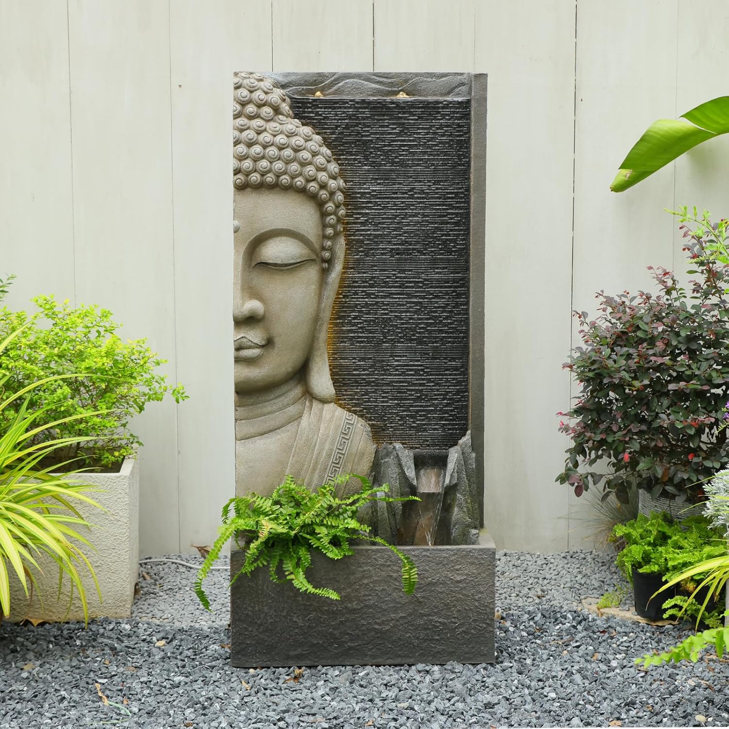 - Serene Buddha Half-Face Design – Artistic sculpture with a textured stone-look finish adds a sense of spirituality and tranquility to your garden, patio, or meditation space. Buddha statue fountain, spiritual outdoor décor