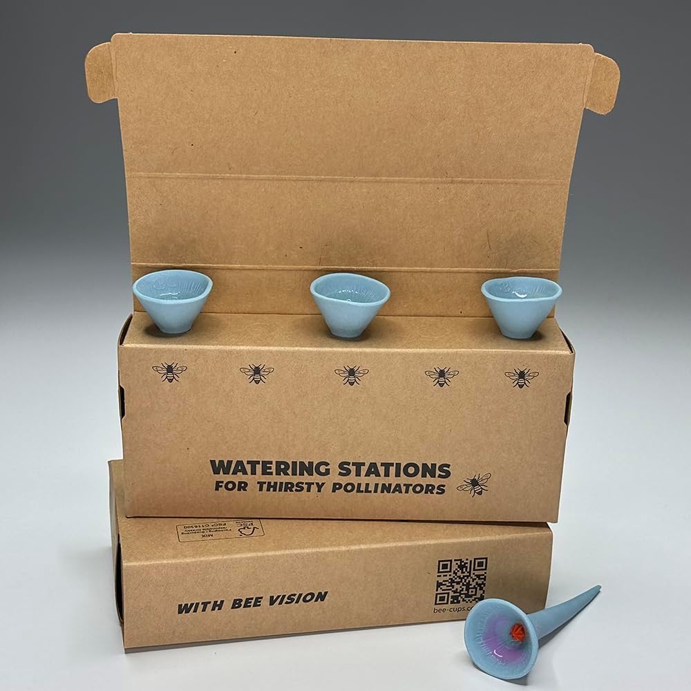 - The Original, Patented Bee Cups: The first and only porcelain watering stations designed specifically for pollinators, backed by a U.S. patent. Place them in an area of your garden that is near your plants or flowers and just add water. Trusted by thousands of gardeners, Bee Cups offer a safe, stylish way to hydrate bees and butterflies in your outdoor space.