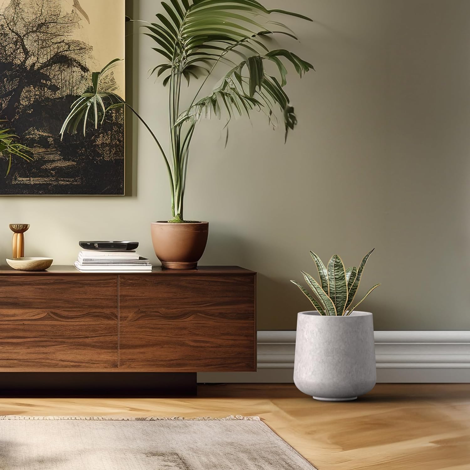 Kante 11.6" Dia Round Concrete Planter, Outdoor Indoor Large Plant Pots Containers with Drainage Hole and Rubber Plug for Home Garden Patio, Light Gray