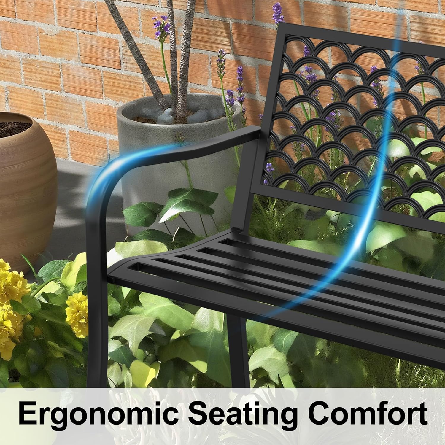 - 【Sturdy & Durable Build】Crafted from heavy-duty steel with a reinforced frame, the outdoor metal bench is perfect as a garden bench, patio bench, or front porch bench. Designed for stability and strength, it offers safe seating year after year. Ideal for families wanting a metal outdoor bench that’s both stylish and dependable for any yard, porch, or lawn.