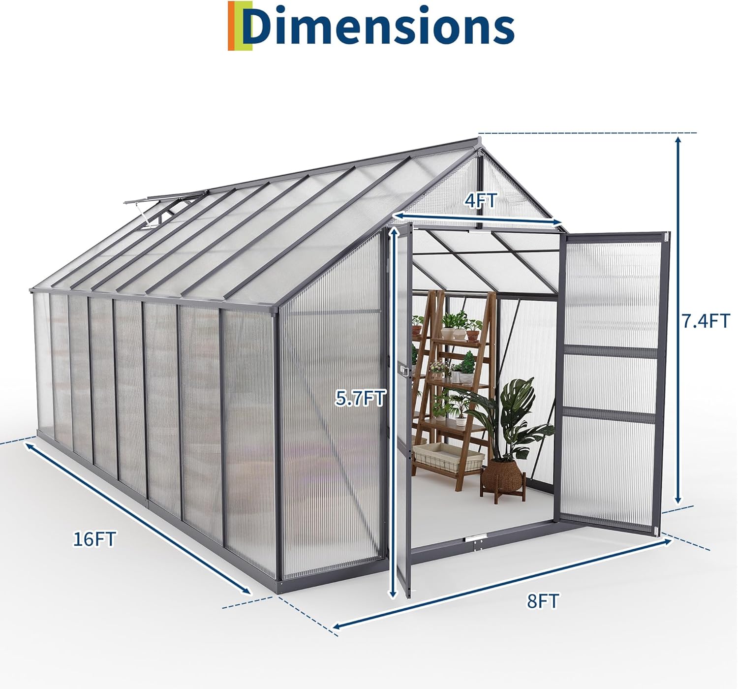 - 【Ventilation & Rain Gutters | Smart Design】Keep the climate under control! Integrated rain channels divert water away, while adjustable roof vents and a smooth-sliding door offer perfect airflow. No more overheating or leaks—just a healthy, happy plant environment all year.
