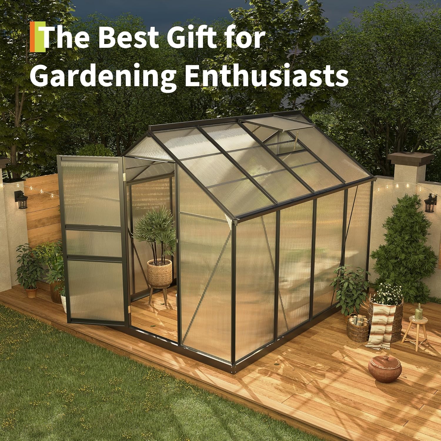 6*8 FT Outdoor Walk-in Greenhouse, Polycarbonate Green House, Heavy Duty Greenhouse with Vented Roof Window, Windproof Aluminum Frame, Suitable for Outside Gardening, Backyard, Patio
