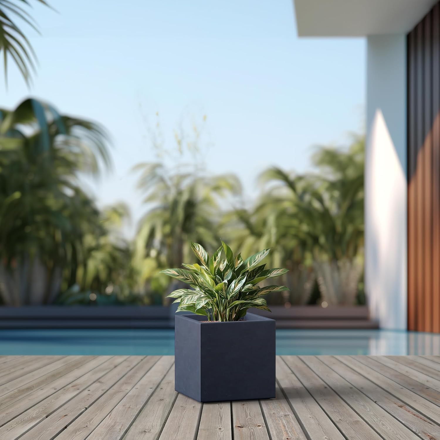 Kante 10 Inch Square Concrete Planter for Outdoor Indoor Home Patio Garden, Large Plant Pot with Drainage Hole and Rubber Plug, Charcoal