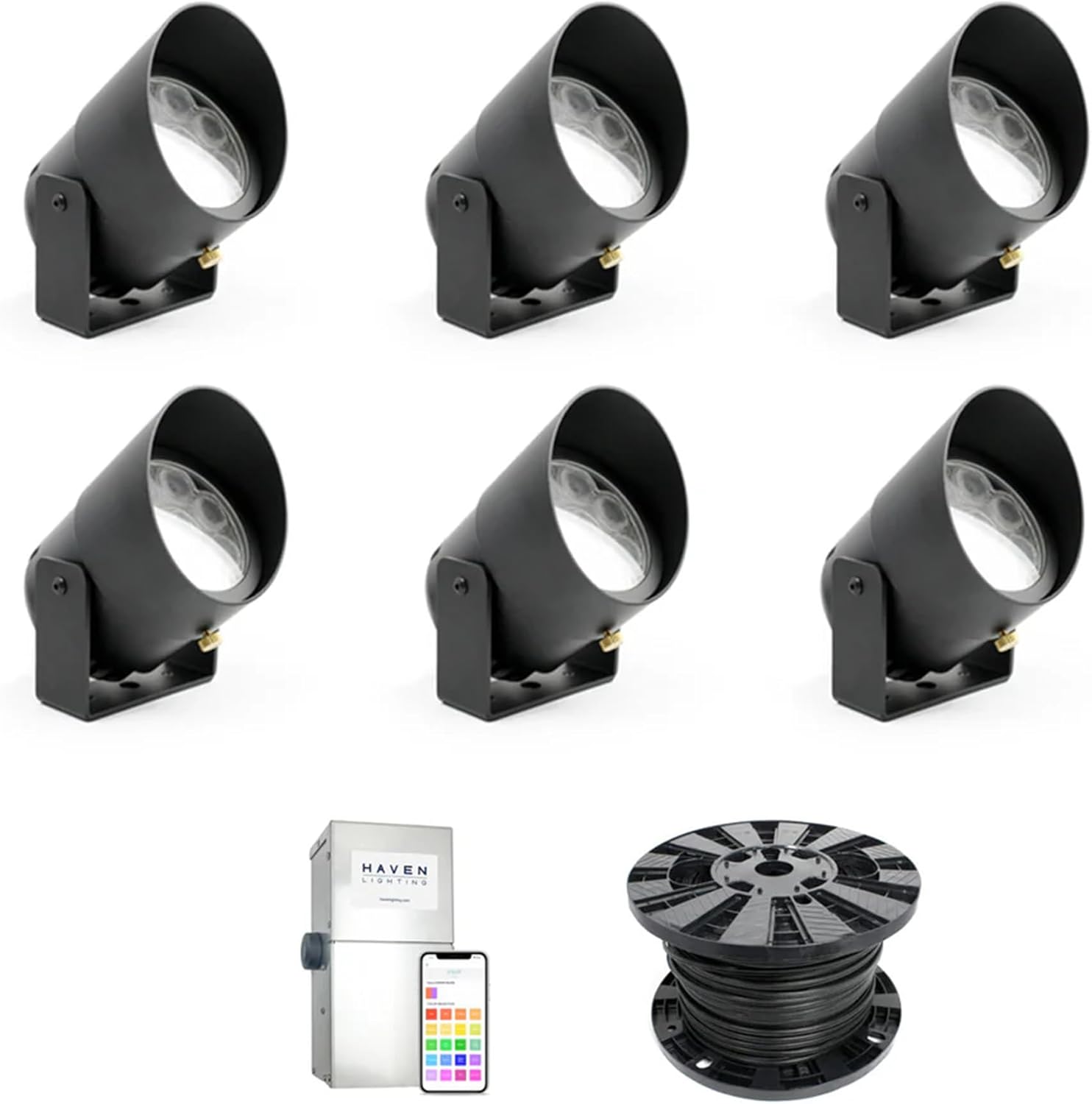 Haven Lighting 9 Series Pro Landscape Lighting Kit - Professional-Grade App Controlled Smart Lights with WiFi - Color Changing Exterior House Lighting, 6-Up LED Lights