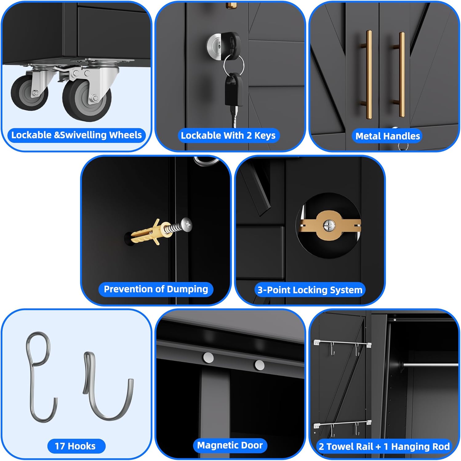 - [DIY YOUR STORAGE] Our storage cabinet provides 4 adjustable shelves, 5 pieces of Pegboard, 1 hanging rod, 2 towel rails, catering to your DIY needs. You can design a storage solution that perfectly fits your unique lifestyle and storage requirements.