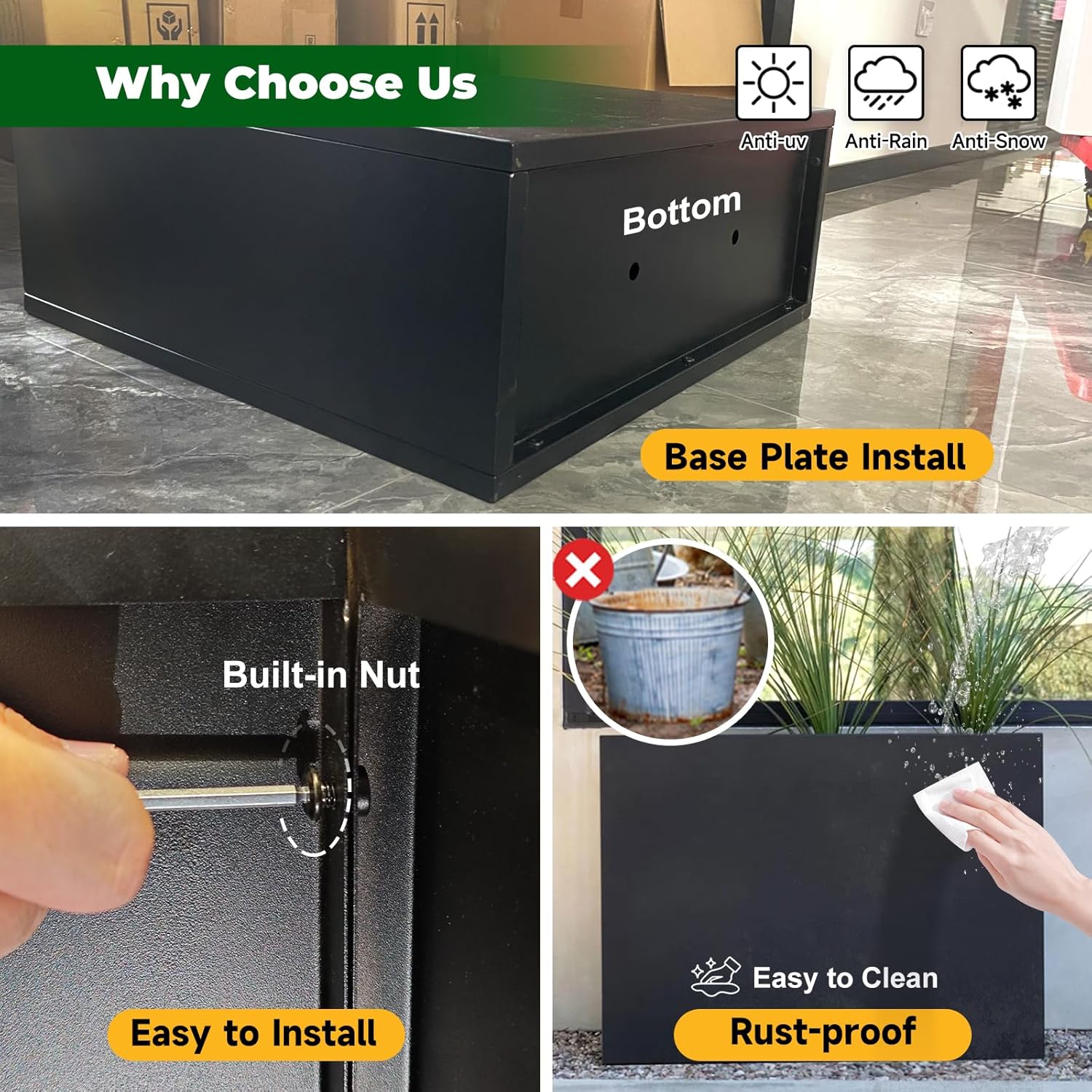 Galvanized Steel Metallic Heavy Planter for Outdoor Plants Metal Outdoor Planter Spliced Flower Box with Partitions for Outside,Indoor,Garden (Black, 32 * 15 * 24)