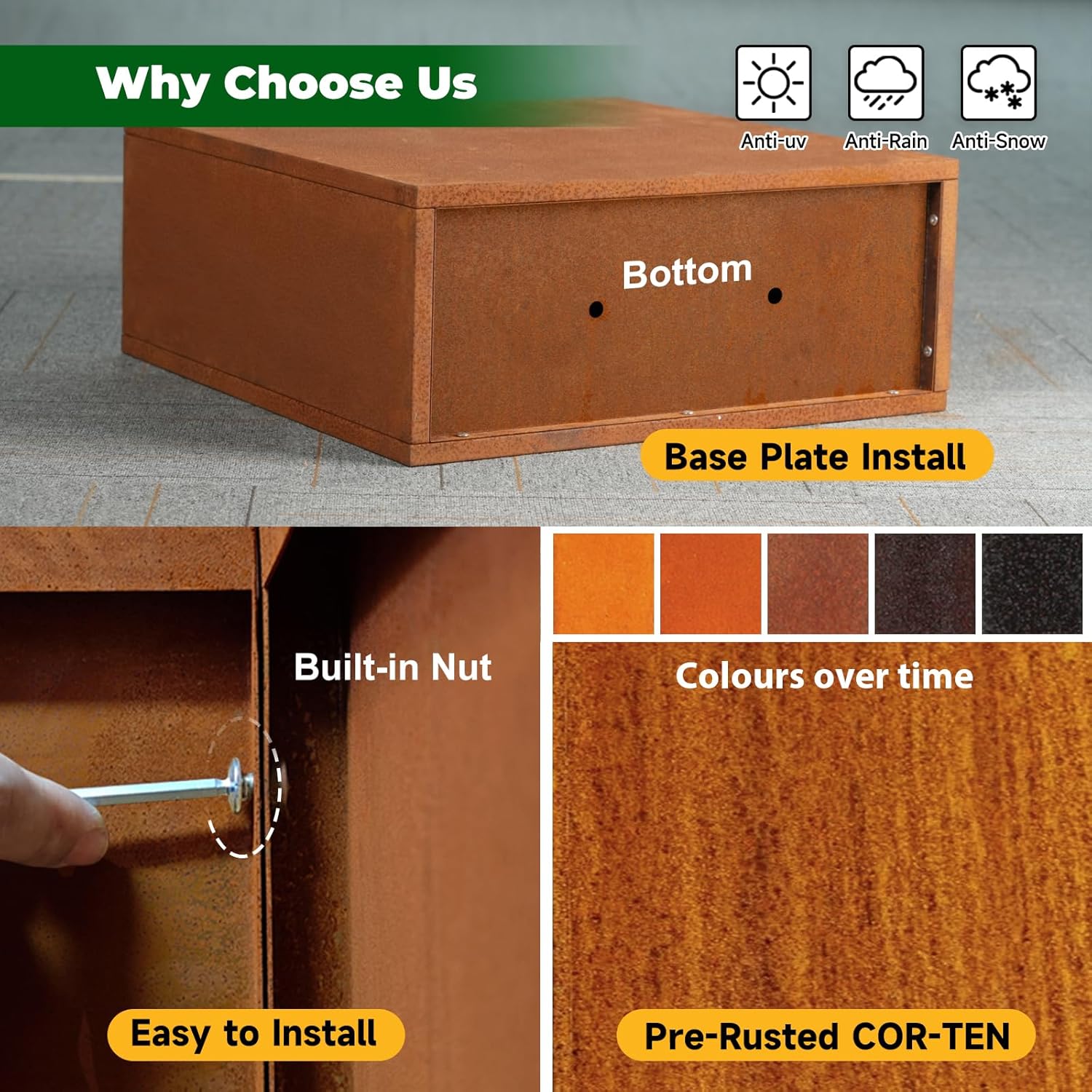 Galvanized Steel Metallic Heavy Planter for Outdoor Plants Metal Outdoor Planter Spliced Flower Box with Partitions for Outside,Indoor,Garden (Corten, 32 * 15 * 24)