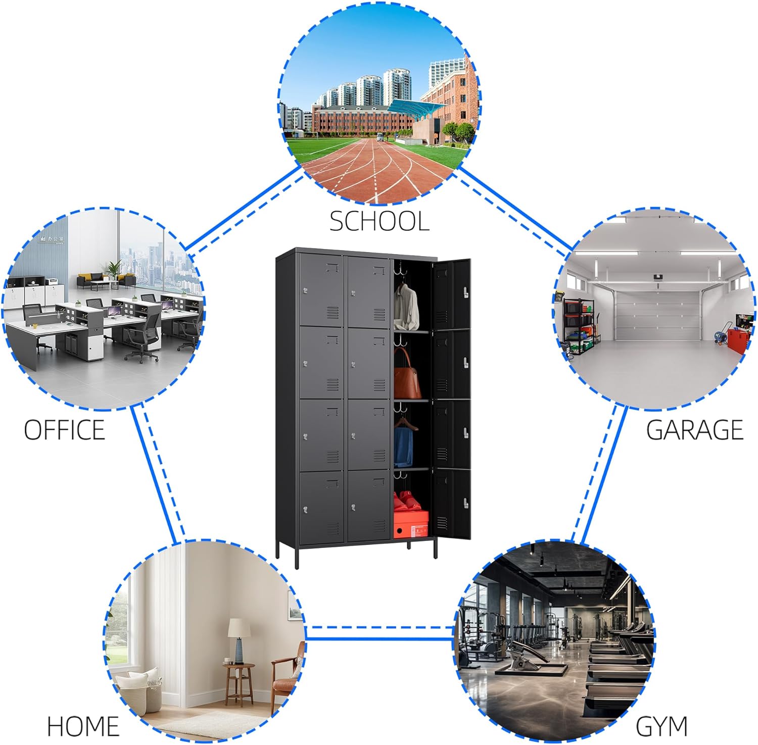 12 Doors Employee Lockers,72" H Metal Storage Lockers for Employees with 12 Hooks for Offices School Gyms Home,Assembly Required,Black