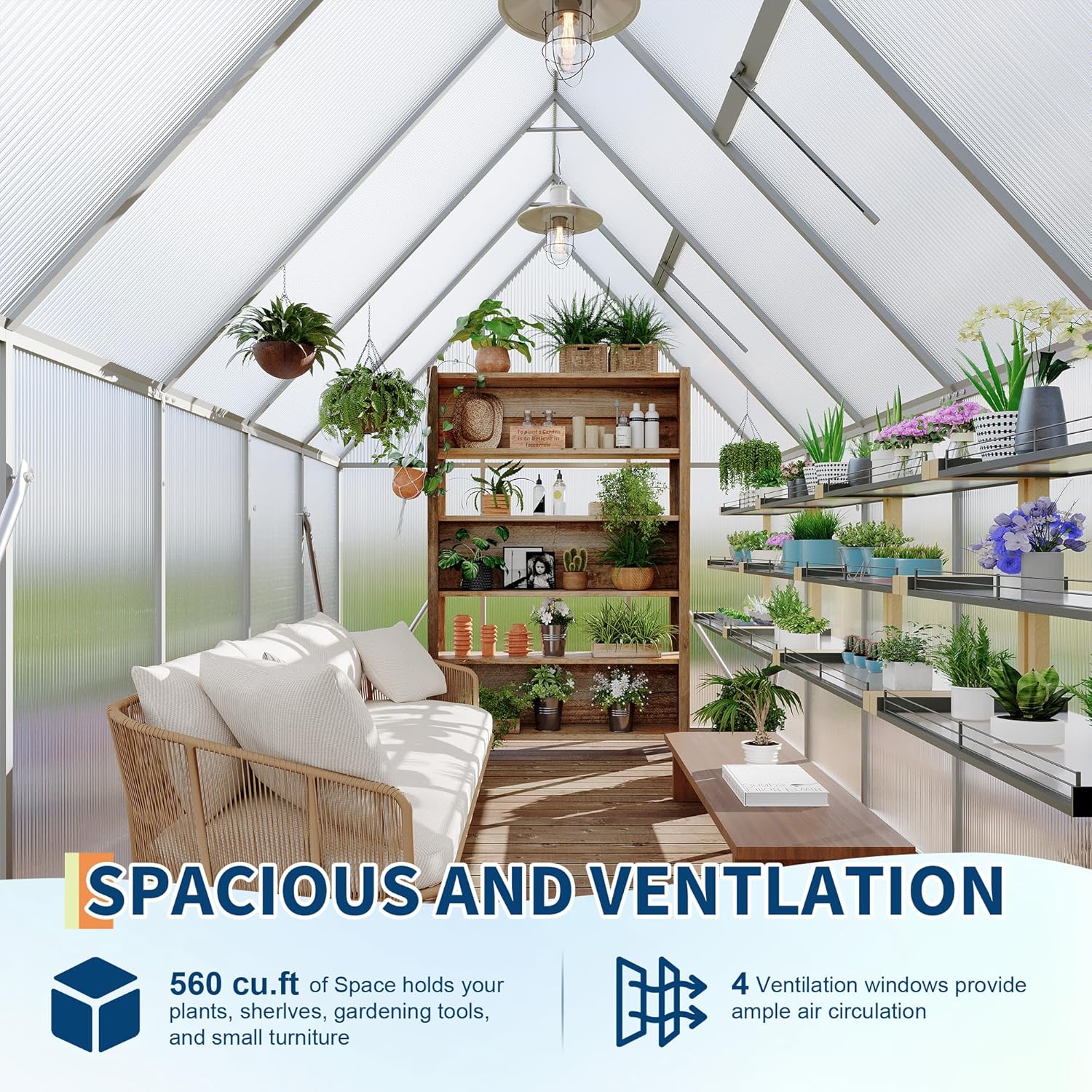 - Versatile for All Seasons & Quick Setup Structure - These backyard friendly structures are perfect for cultivating a variety of vegetables, plants, and herbs, with ample space for gardening tasks. Designed for simplicity with a quick install system and slide in panels, our greenhouse, which has been perfected through over 500 tests, boosts setup speed by 40% and enhances stability by 35%. This polycarbonate greenhouse for outdoors features a simplified assembly process with innovative quick conn