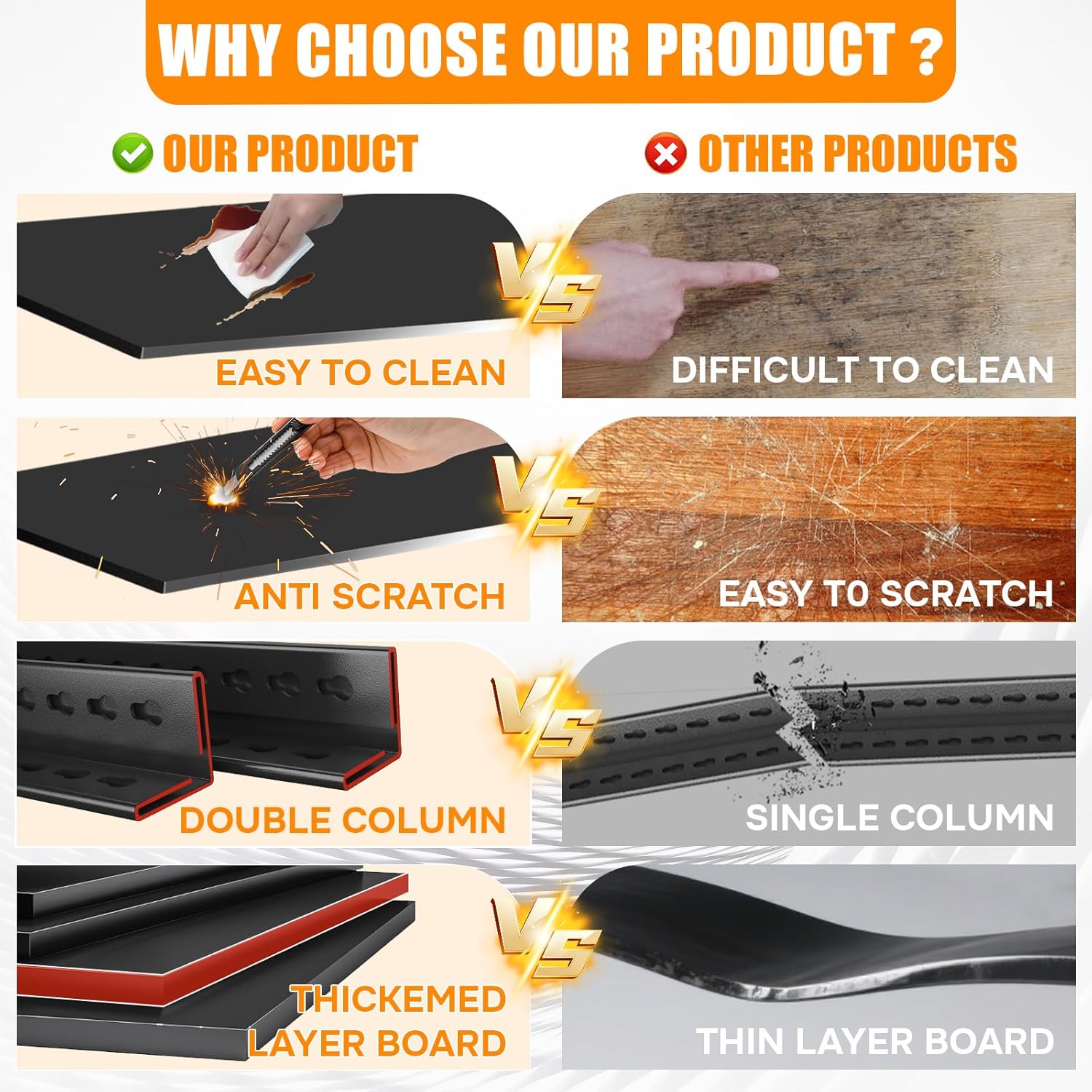 - Upgraded Double-Layer Columns and Reinforced Beams: Unlike ordinary garage shelves on the market that use single-layer columns, our product features upgraded double-layer columns. Double-layered columns and reinforced beams ensure these garage shelves are exceptionally stable. Thanks to a scientifically engineered frame structure, weight is distributed effectively—eliminating concerns about shelving shifting or boards warping
