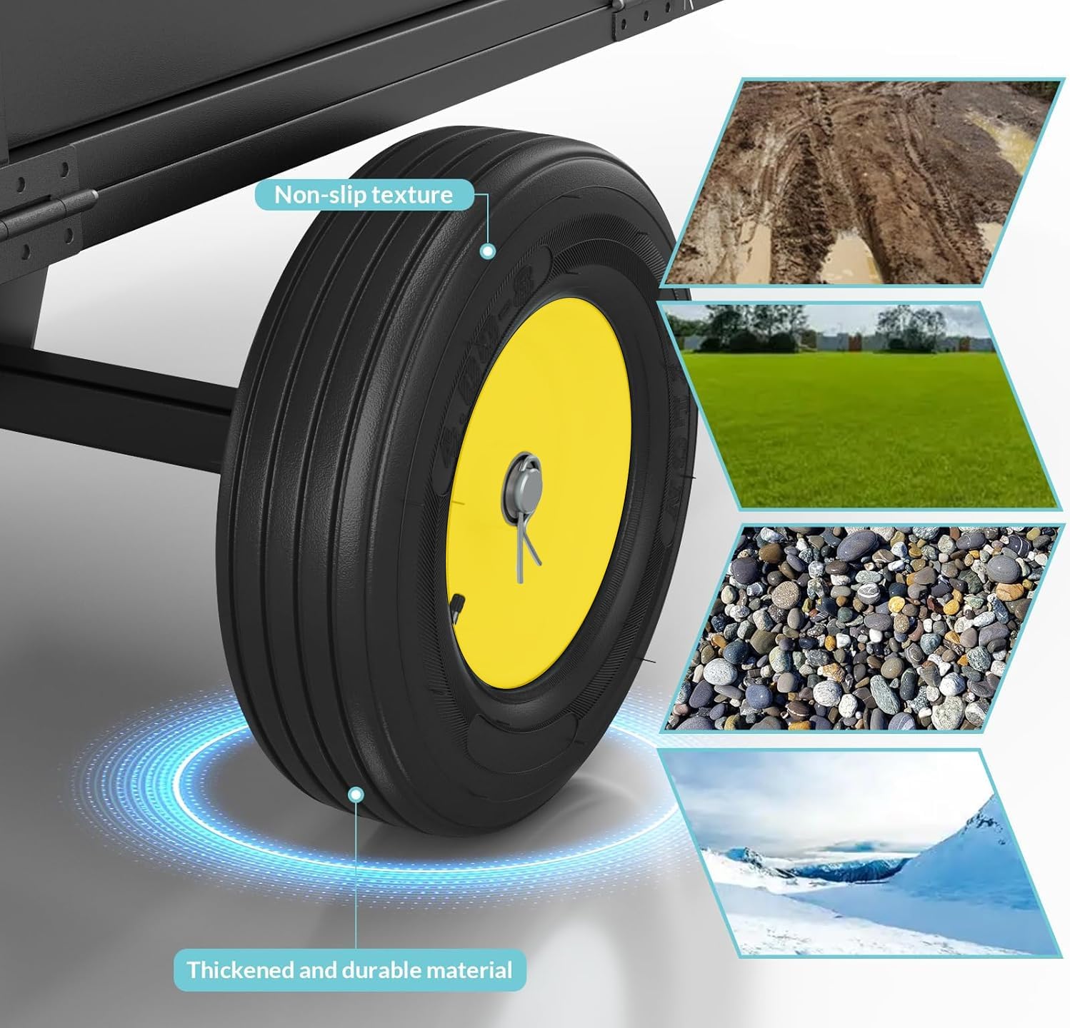 - [Quick Dump – Hand or Foot Lever] - Effortlessly unload materials using the hand or foot lever. Rear gate opens fast for seamless yard cleanup and efficient work.