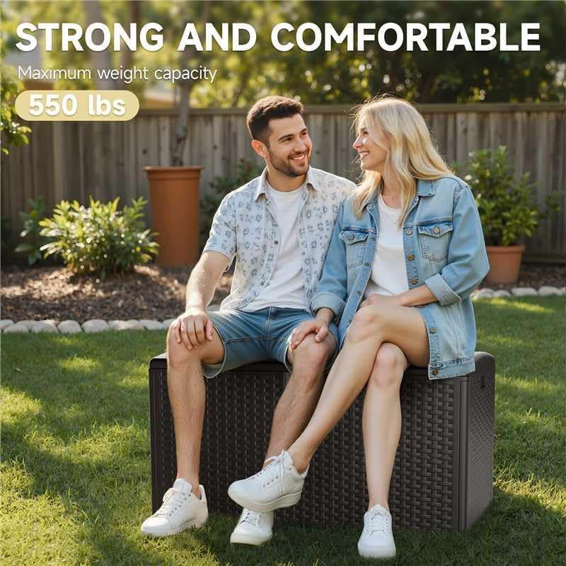 - 1. Exceptional Strength & Durability Engineered with reinforced double-wall resin construction, this deck box offers superior load-bearing capacity and resists warping, ensuring steadfast performance season after season.